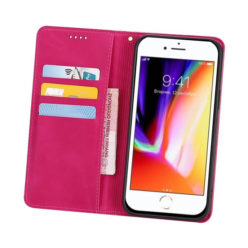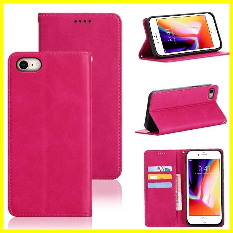 適用 iPhone SE (第2世代/第3世代) ケース 手帳型 (4.7インチ対応) iphone8 用 iphone7 用 手帳型 ケース カバー PUレザー カード収納 財布型 耐衝撃 ケース マグネット スタンド機能付き 5色 (適用 iPhone 7/8/SE2(2020)/SE3(2022)ケース 手帳型) (ローズレッド)