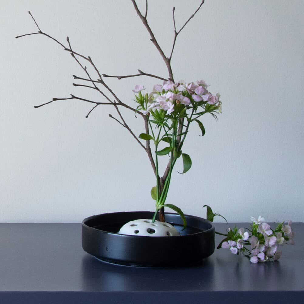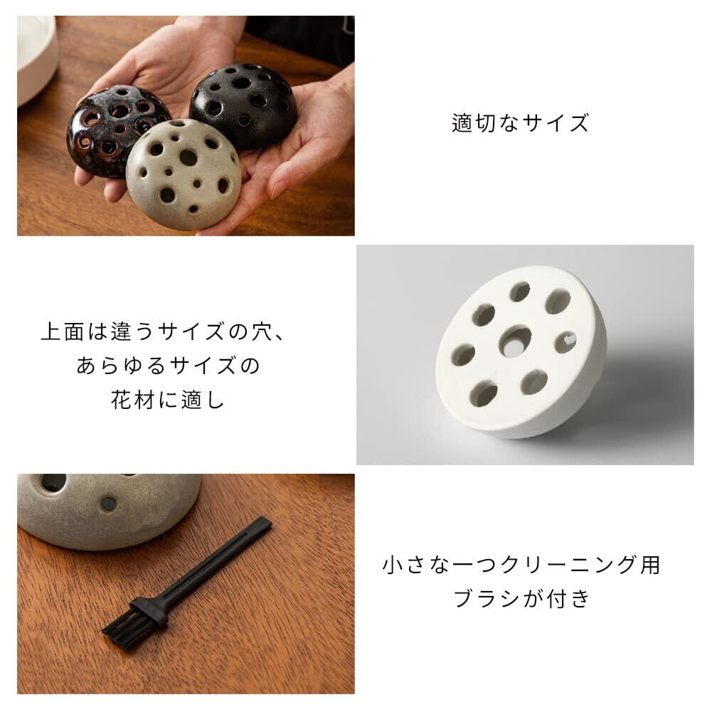 ✿使う手順:1、剣山を水で盛れた花器の水盤に置きます。2、穴に1本または2本の花・草・枝の素材を挿入ます。3、花の素材は底の穴で固定され、安定するまで完了。