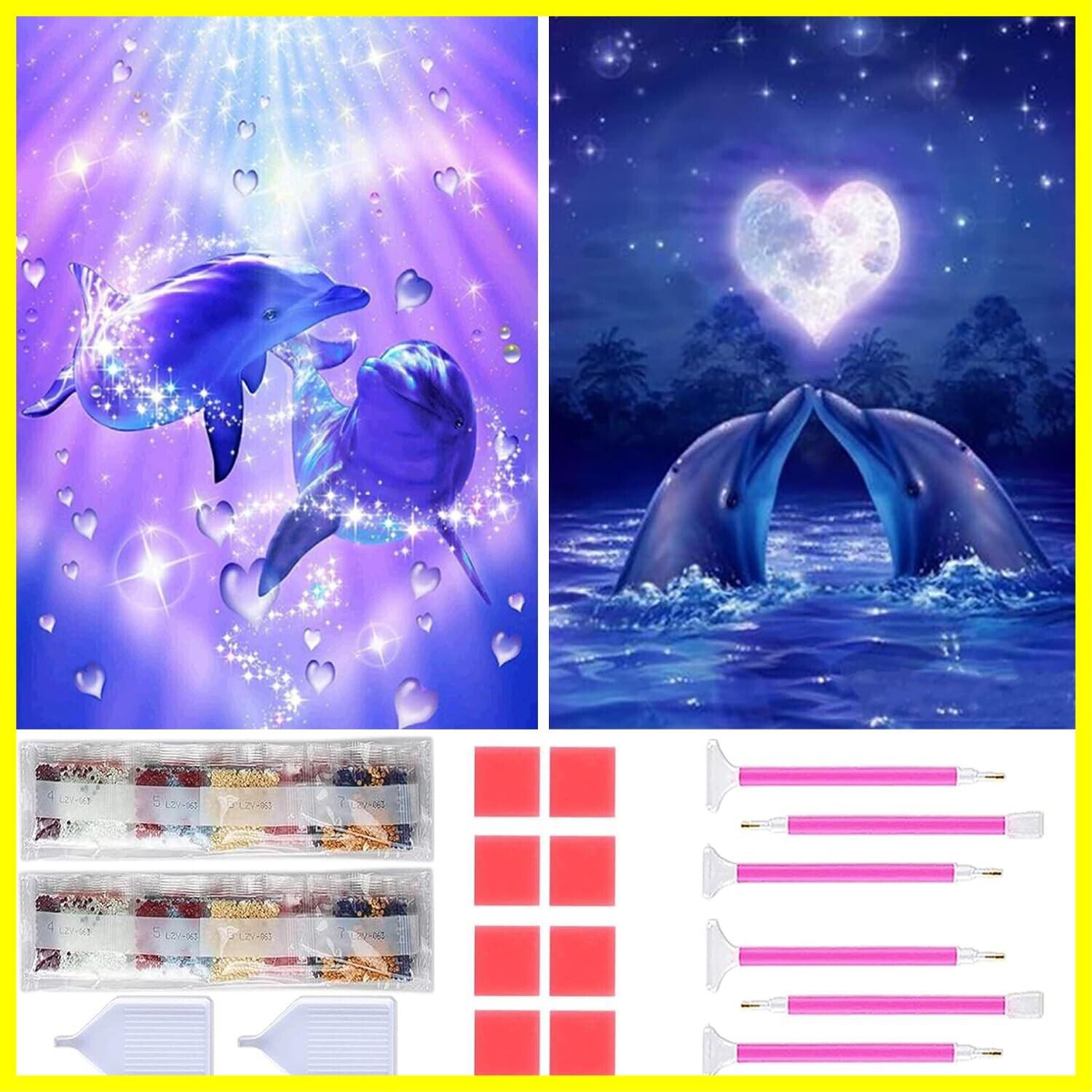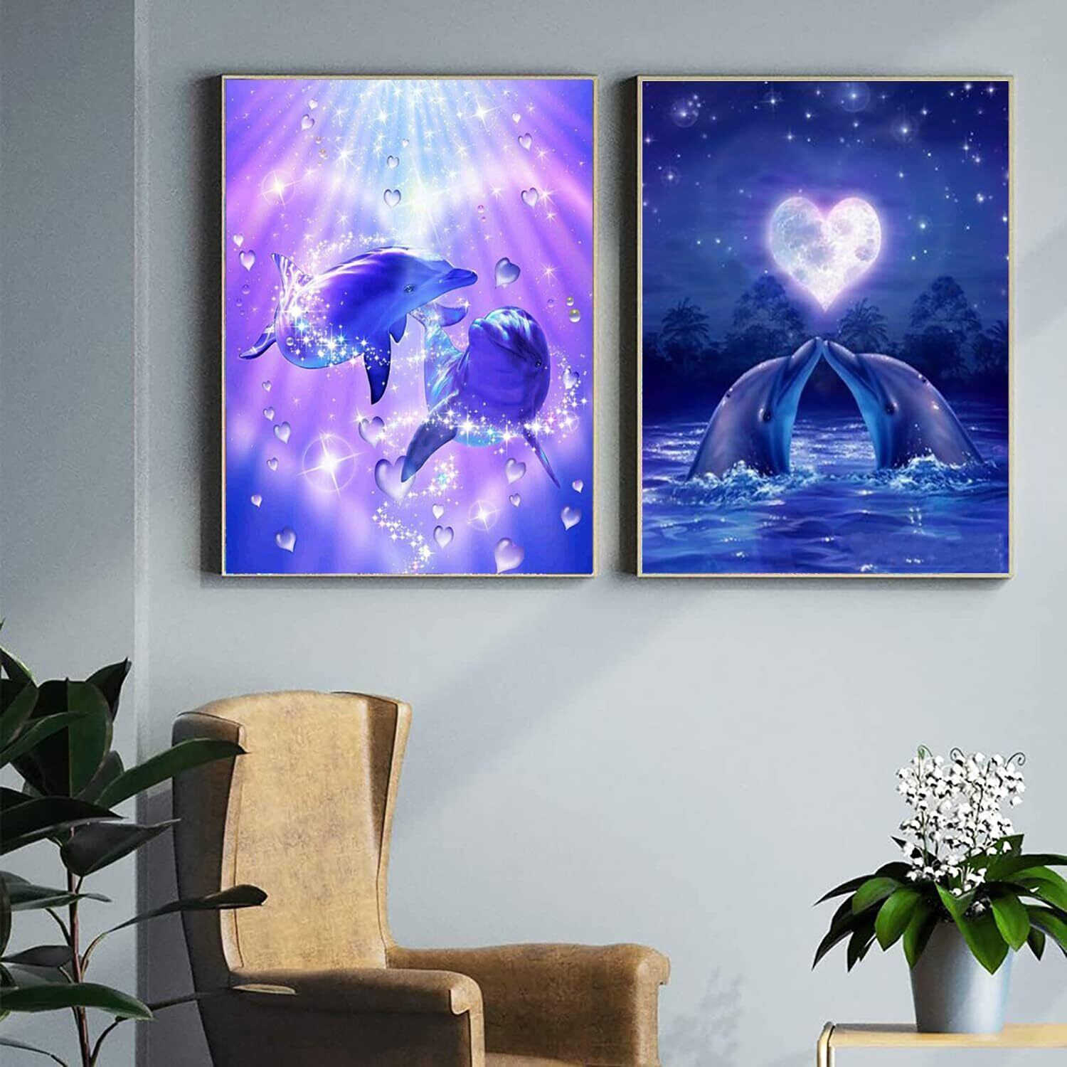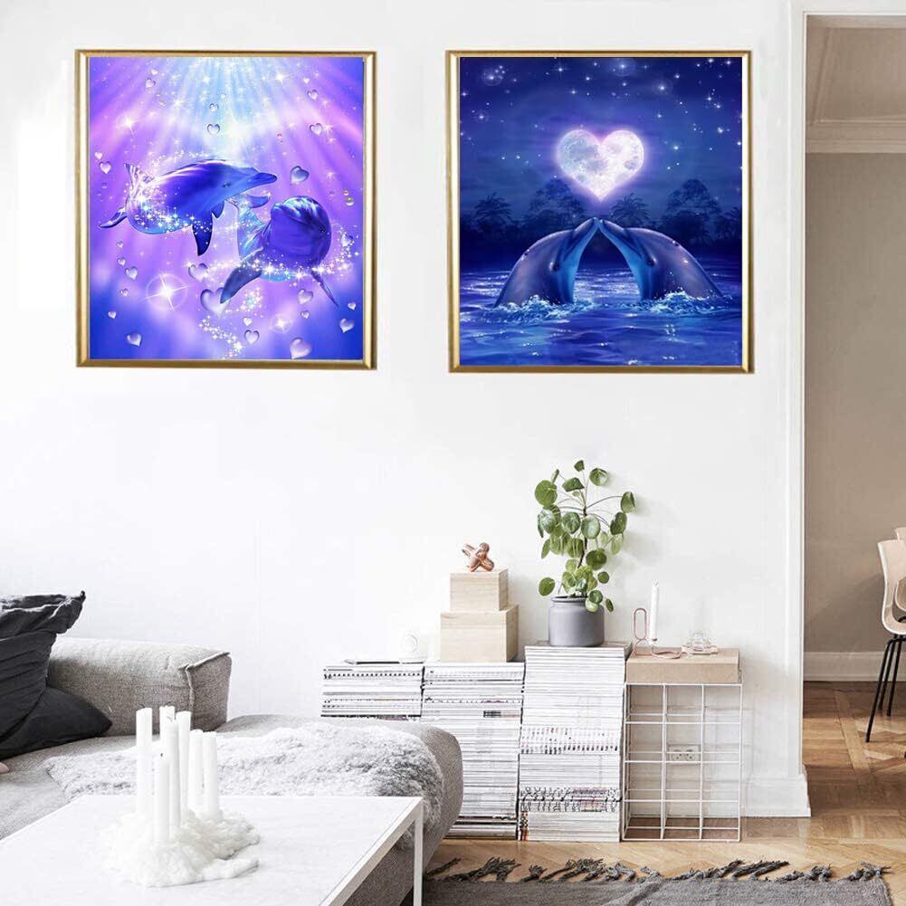 ダイヤモンドアート キット Rinimie ダイヤモンドアート イルカ 2枚セット ダイアモンドビーズ絵画キット 5Dモザイクアート DIY 手作り絵画手芸キット ダイヤモンド塗装 全面貼り付けタイプ 芸術品 家用装飾 30x40cm