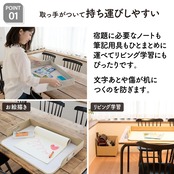 【持ち運びできるデスクマット】持ち手がついていて持ち運びがしやすく、片付けにぴったりなデスクマットです。文房具やプリントをひとまとめにして運べるので、お子さんのリビング学習にもオススメです。