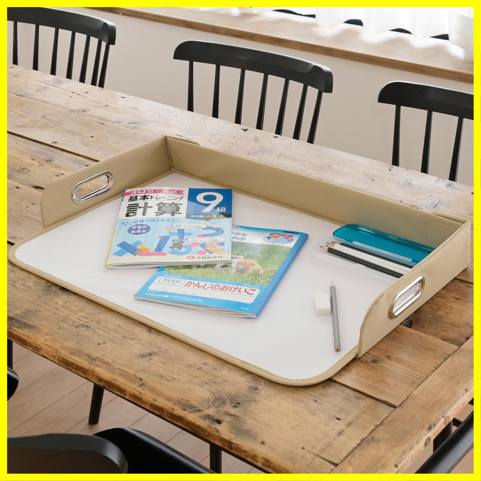 【傷や文字のあとが残らない】トレーのように持ち運びに使うだけではなく、デスクマットとして使えば学習やお絵描きをする際、大事な机に傷や文字あとが付くのを防ぎます。マットをお手入れする際は、乾いた布か硬く絞った布でふき取ってください。