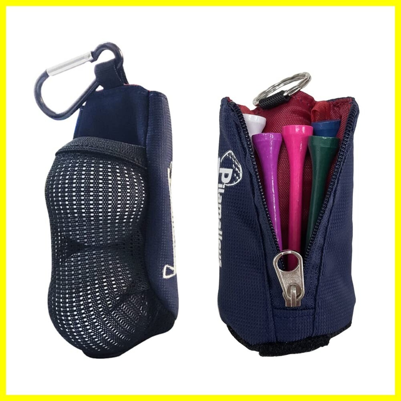 ゴルフボールケース 2個入れ ティー収納 軽量ゴルフポーチ カラビナ付き ゴルフボール入れ ゴルフ用品 ゴルフアクセサリー ティーケース ティーホルダー