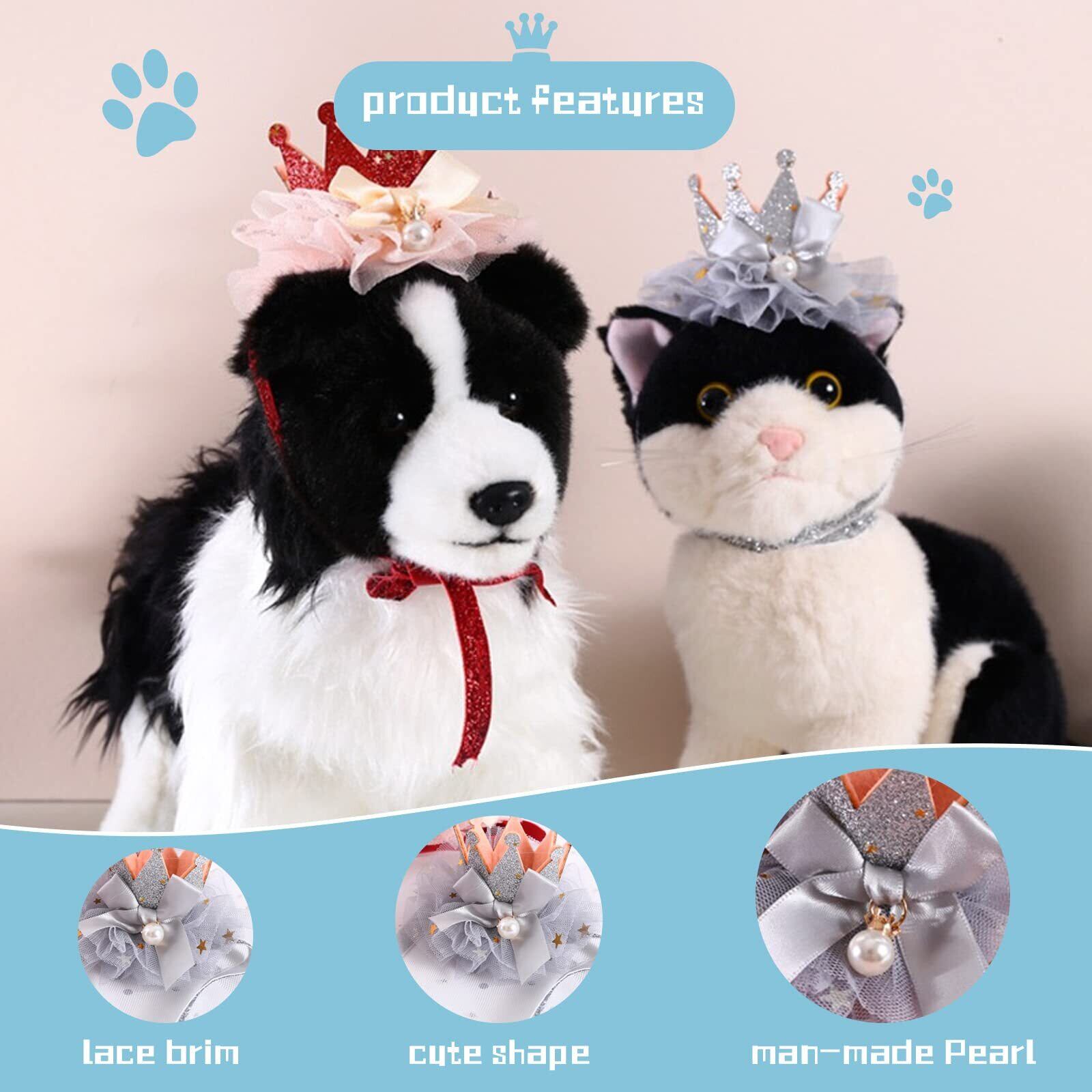 【ペット用帽子】このレースのペット王冠帽子はカラフルで様々な中小型ペットに適しています。このレースの帽子をかぶると、ペットがよりきれいになり、より高貴になります。
