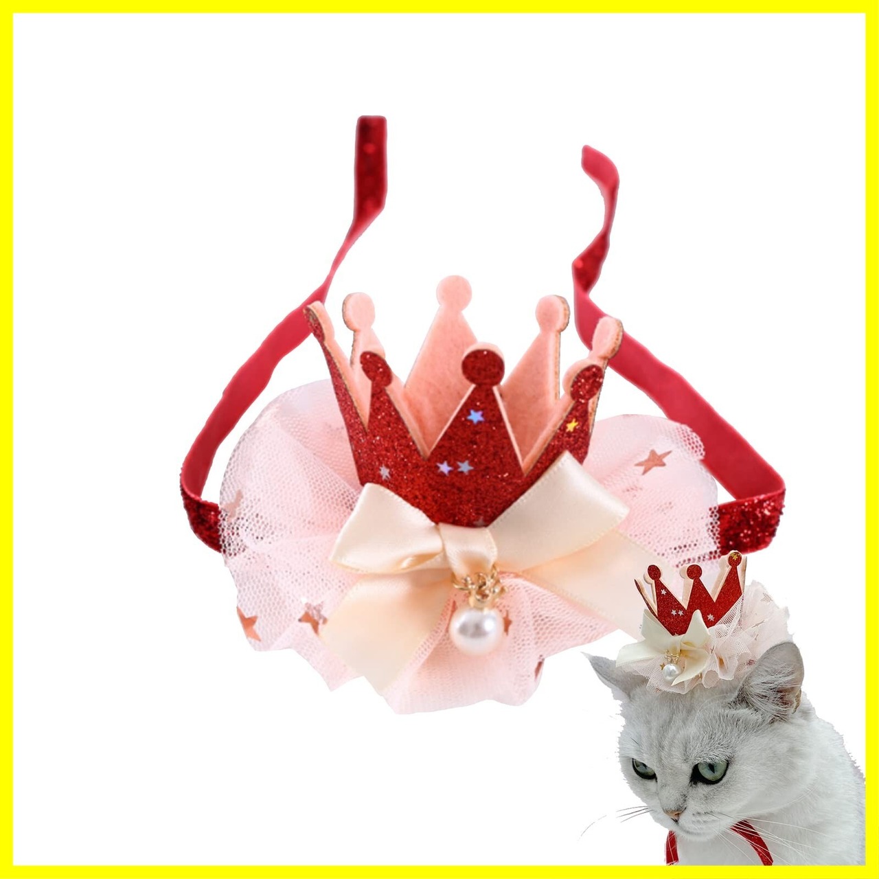 ペット帽子 誕生日 飾り付け ペット用品 かぶりもの プレゼント パーティー飾り コスプレ お姫様風帽子 バースデー 記念日 休日お祝い 犬 猫用 王冠 4色 (レッド)