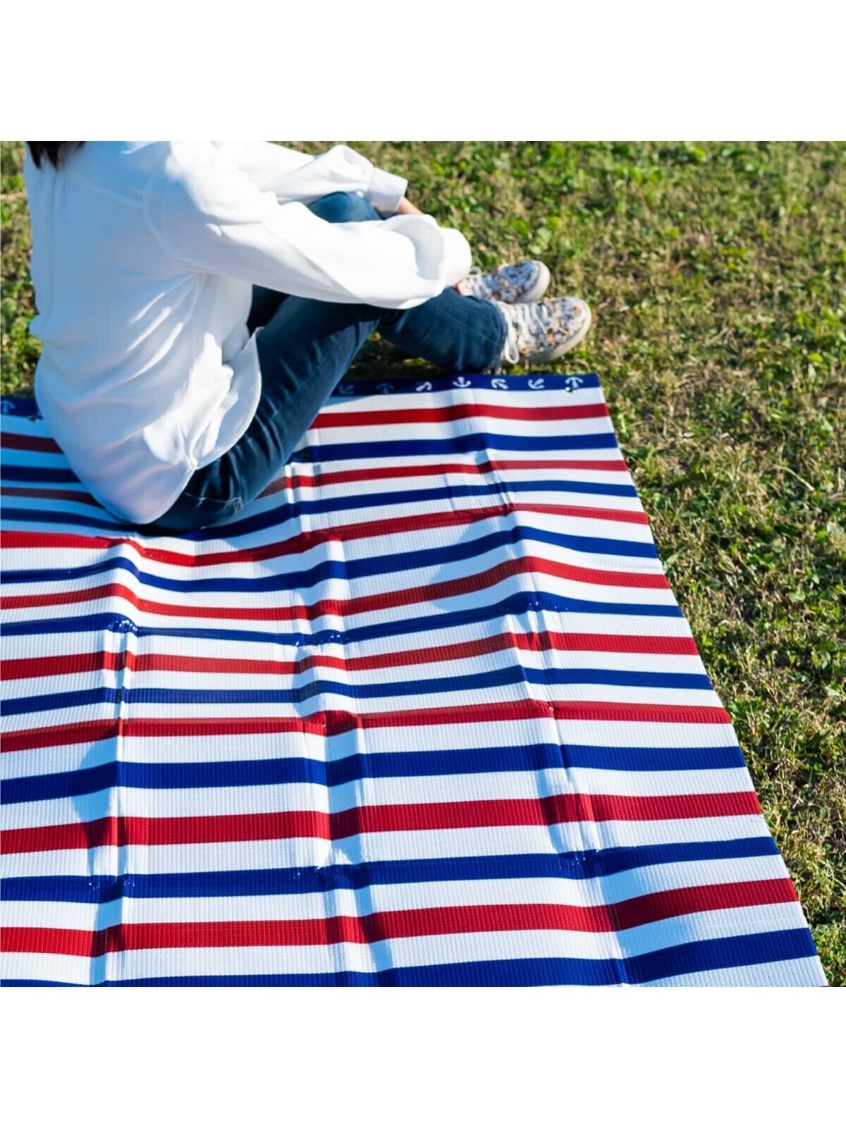 おしゃれで可愛いマリンボーダー柄のレジャーシートです