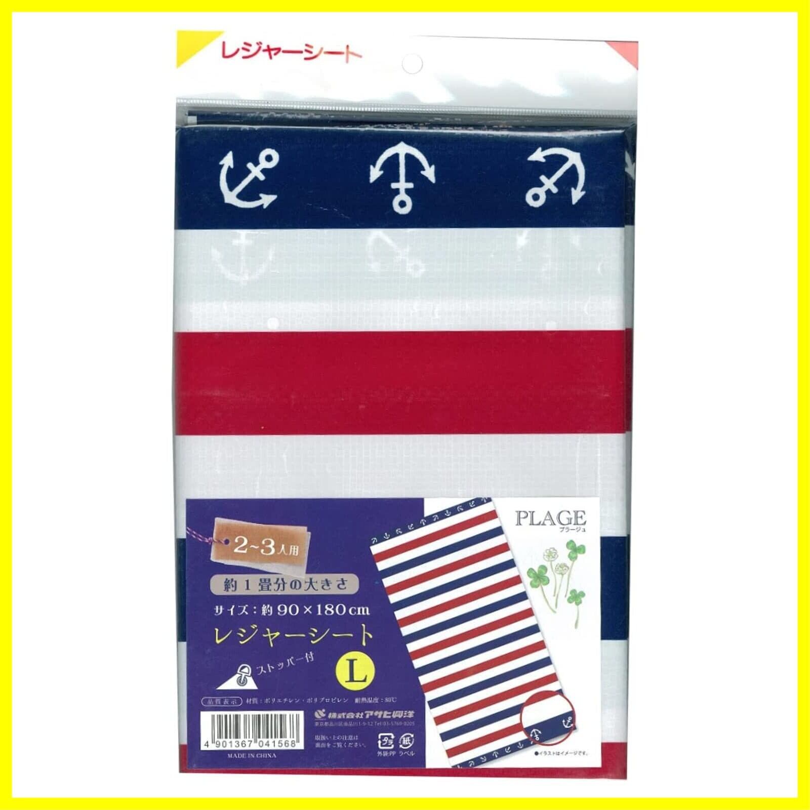 アサヒ興洋 レジャーシート 2~3人用 90×180cm 1畳 マリンボーダー シートピン付き プラージュ