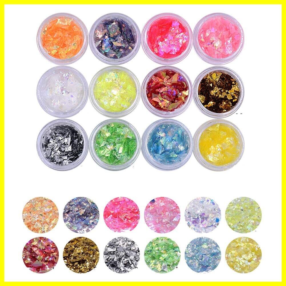 ネイル アート グリッター マイラー スライス 不規則 スパンコール ガラス ピース ホイル フレーク 装飾 12 色 12枚入り(1パック)