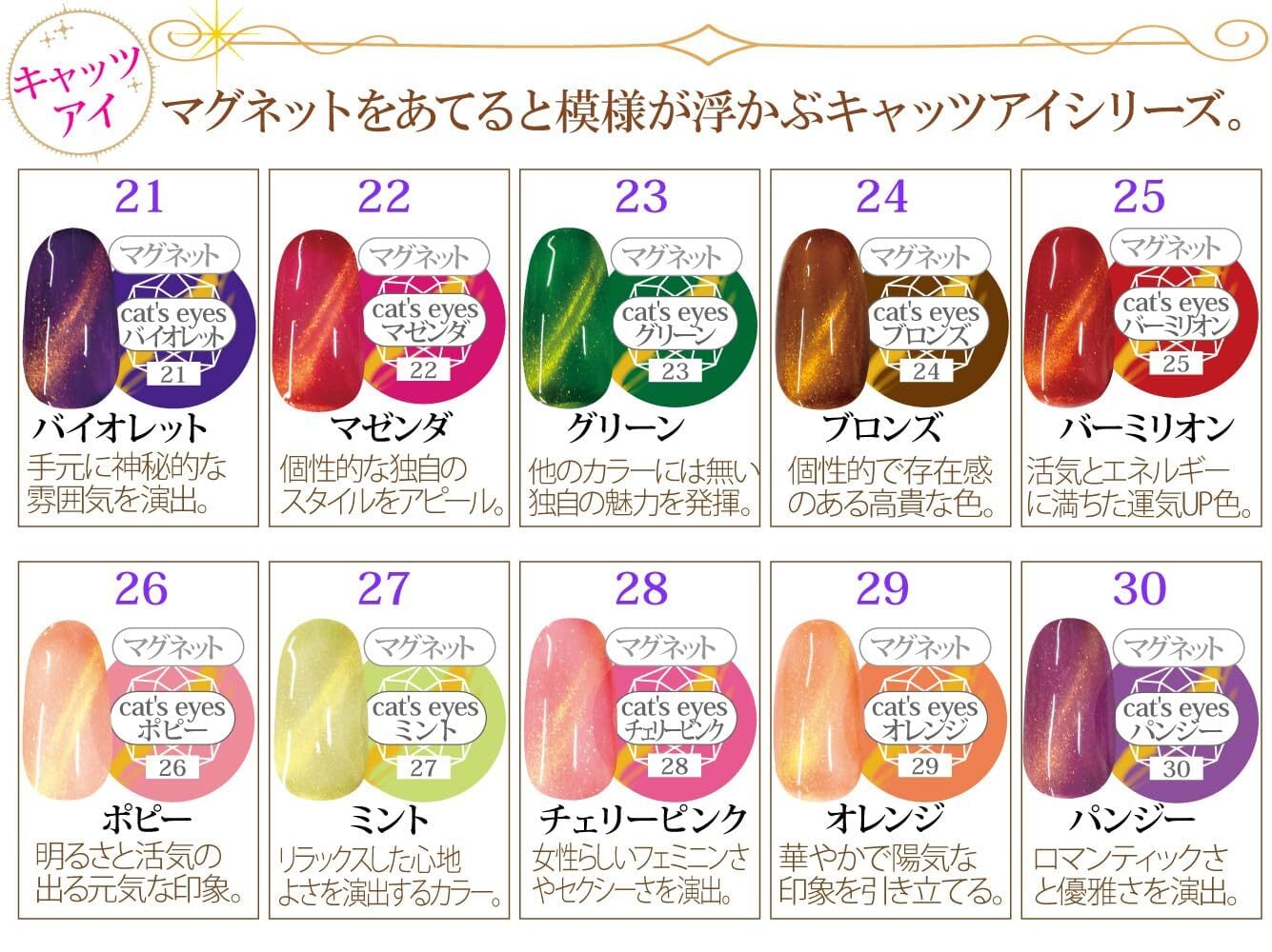 ネイルレシピ カラージェル キット 30色カラージェルセット ジェルネイル(ラメ&キャッツアイ)