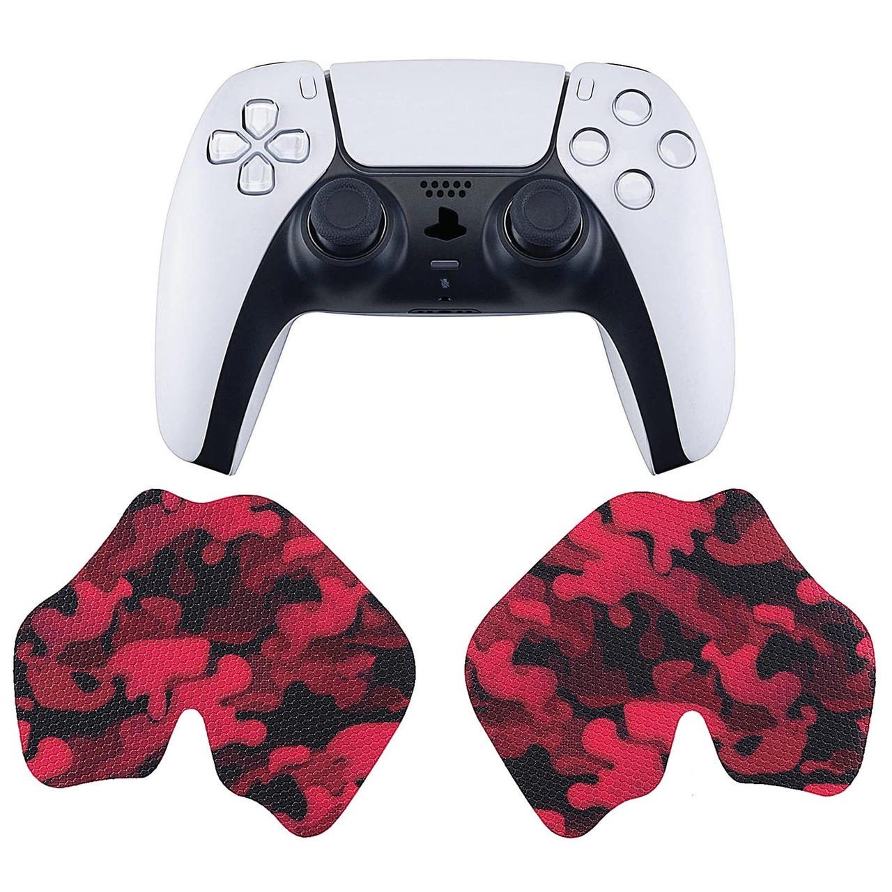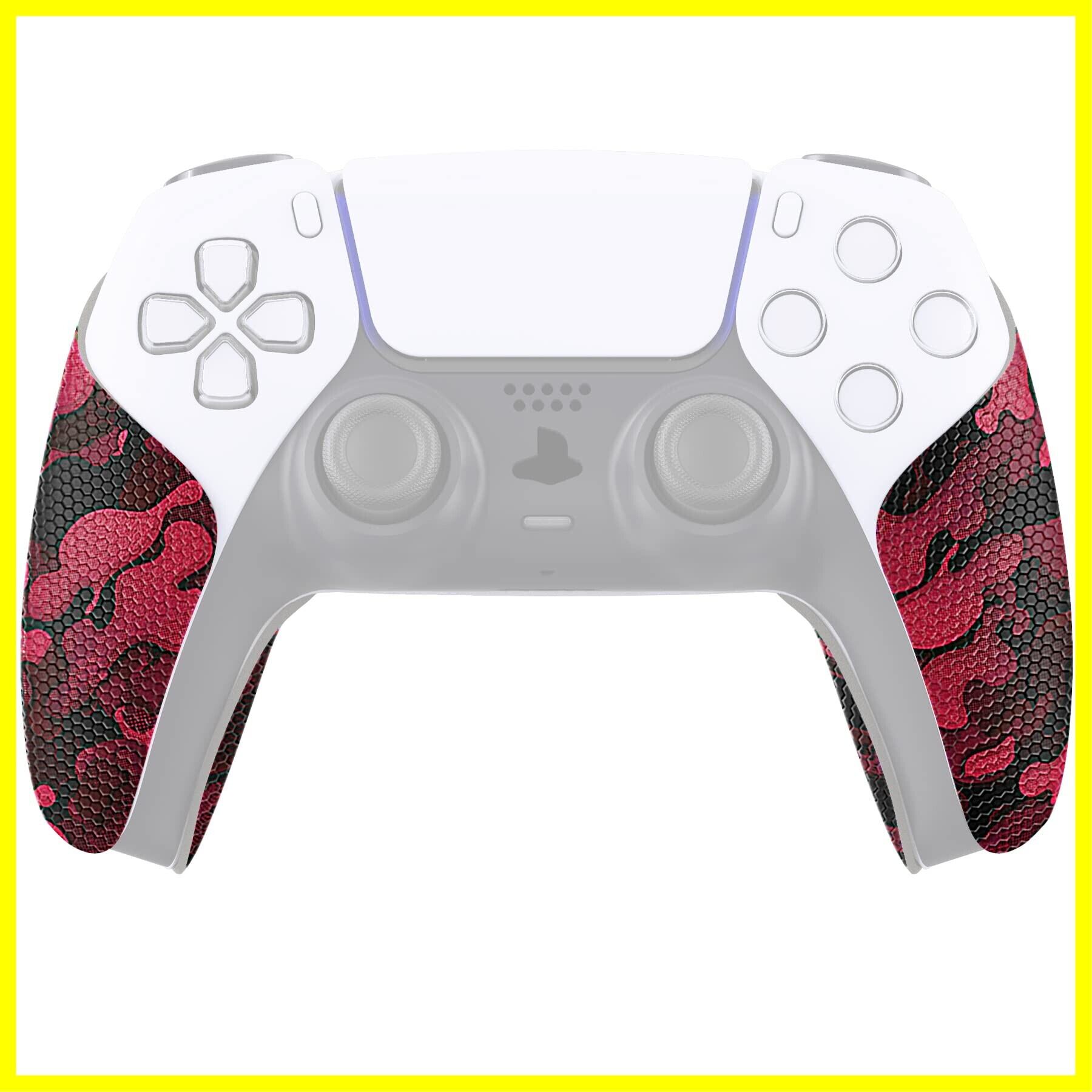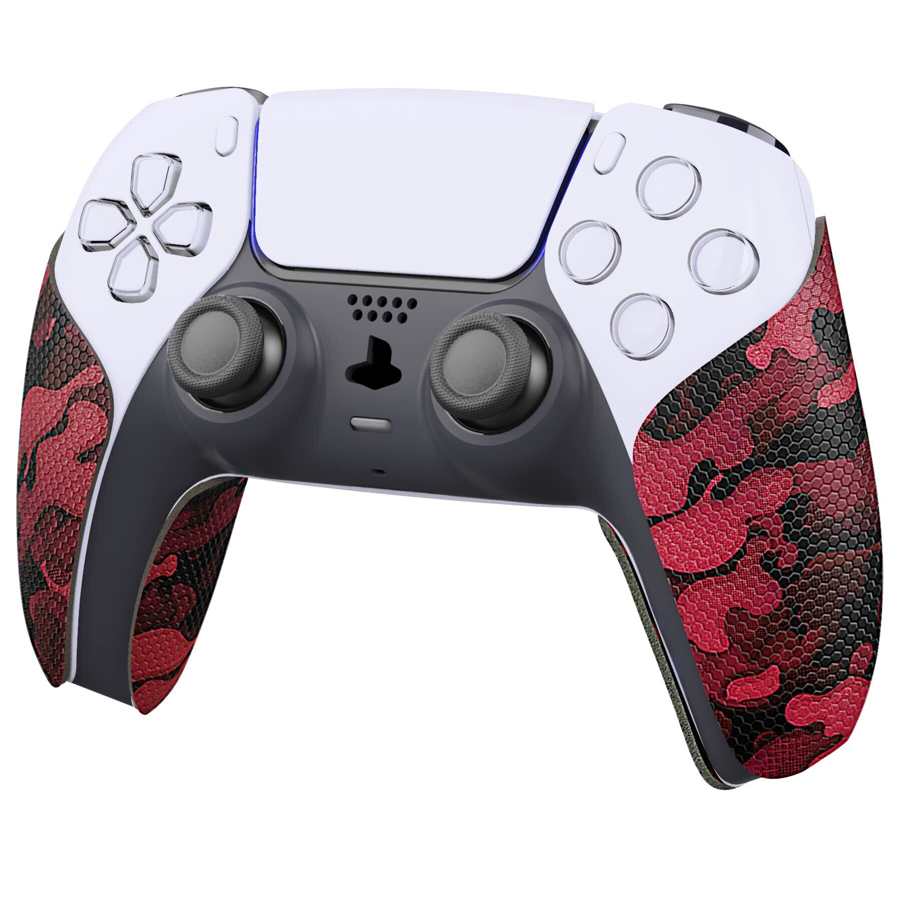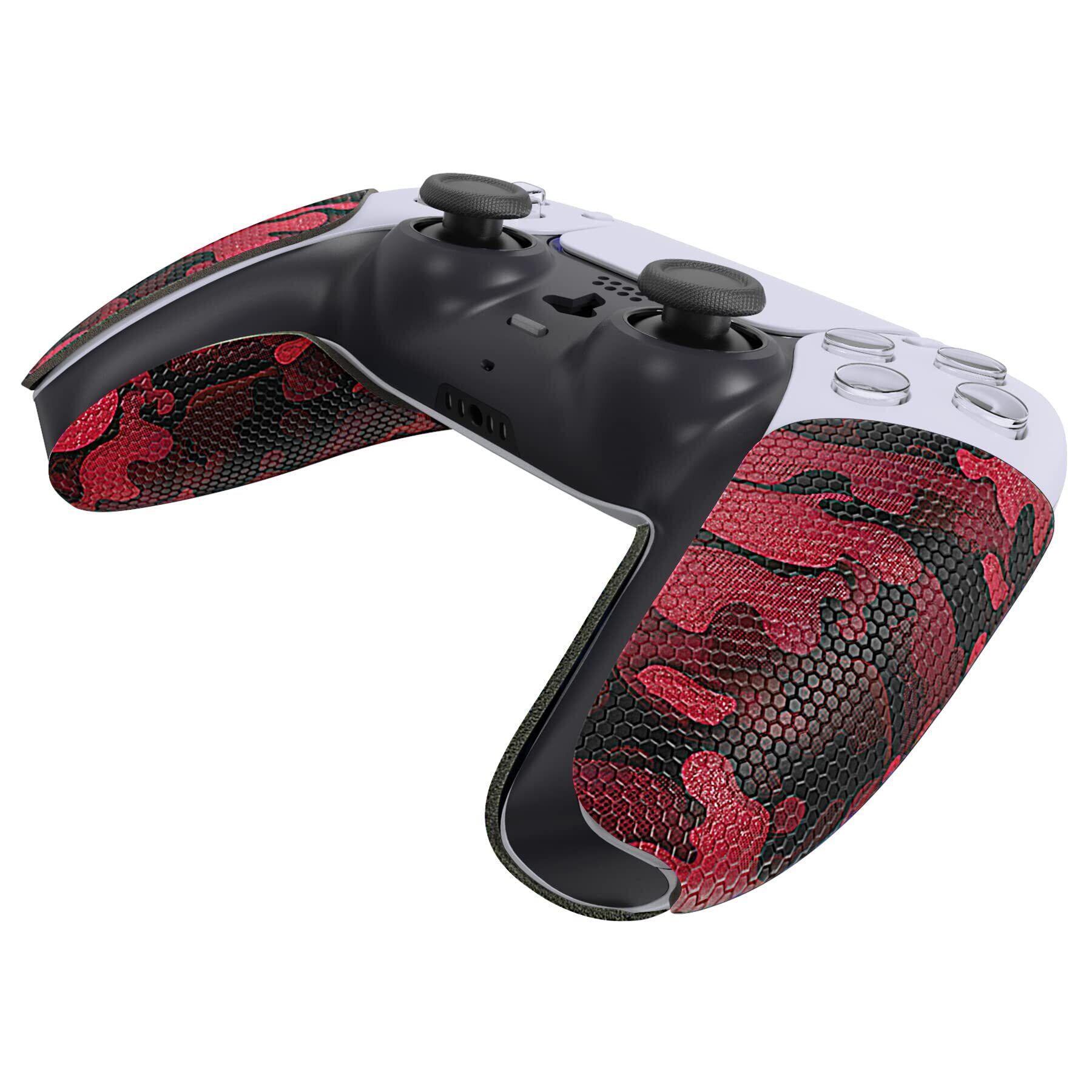 PlayVital ps5コントローラーに対応用滑り止め汗吸収グリップステッカー、ps5コントローラーに対応するプロなテクスチャード加工のソフトラバーパッドハンドルグリップステッカー【ブラックレッドカモフラージュ】