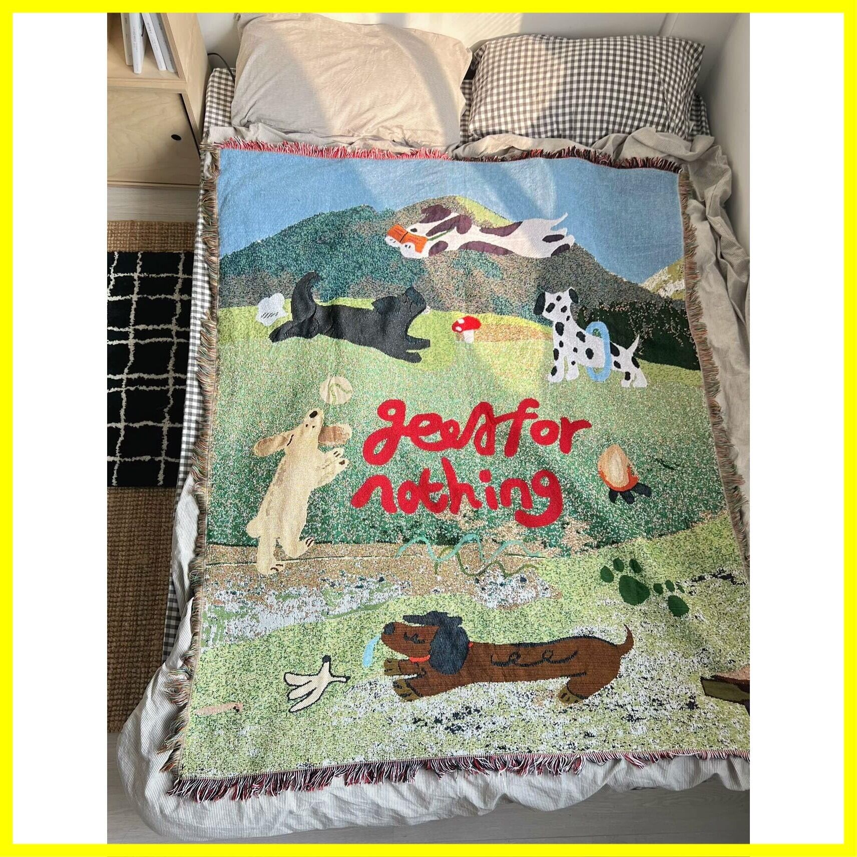 Great for nothing 可愛い 犬 ,ダックスフント,草原の遊び ,おしゃれ マルチカバー ブランケット , 韓国風のインテリア, インテリア, ベッドカバー (130X160cm)