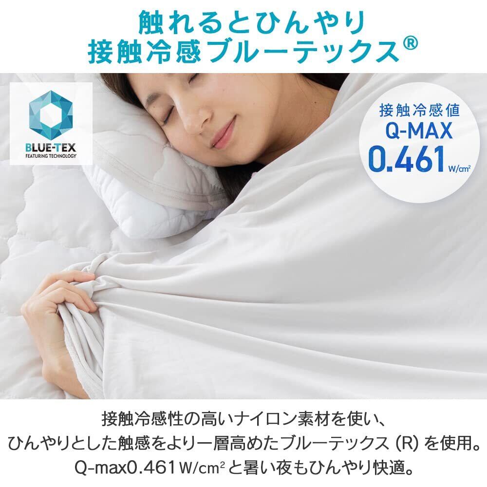 接触冷感の基準を表す数値のQ-maxが0.4w/cm以上と非常に高い数値結果があり、触るとひんやりとした冷感が得られます。