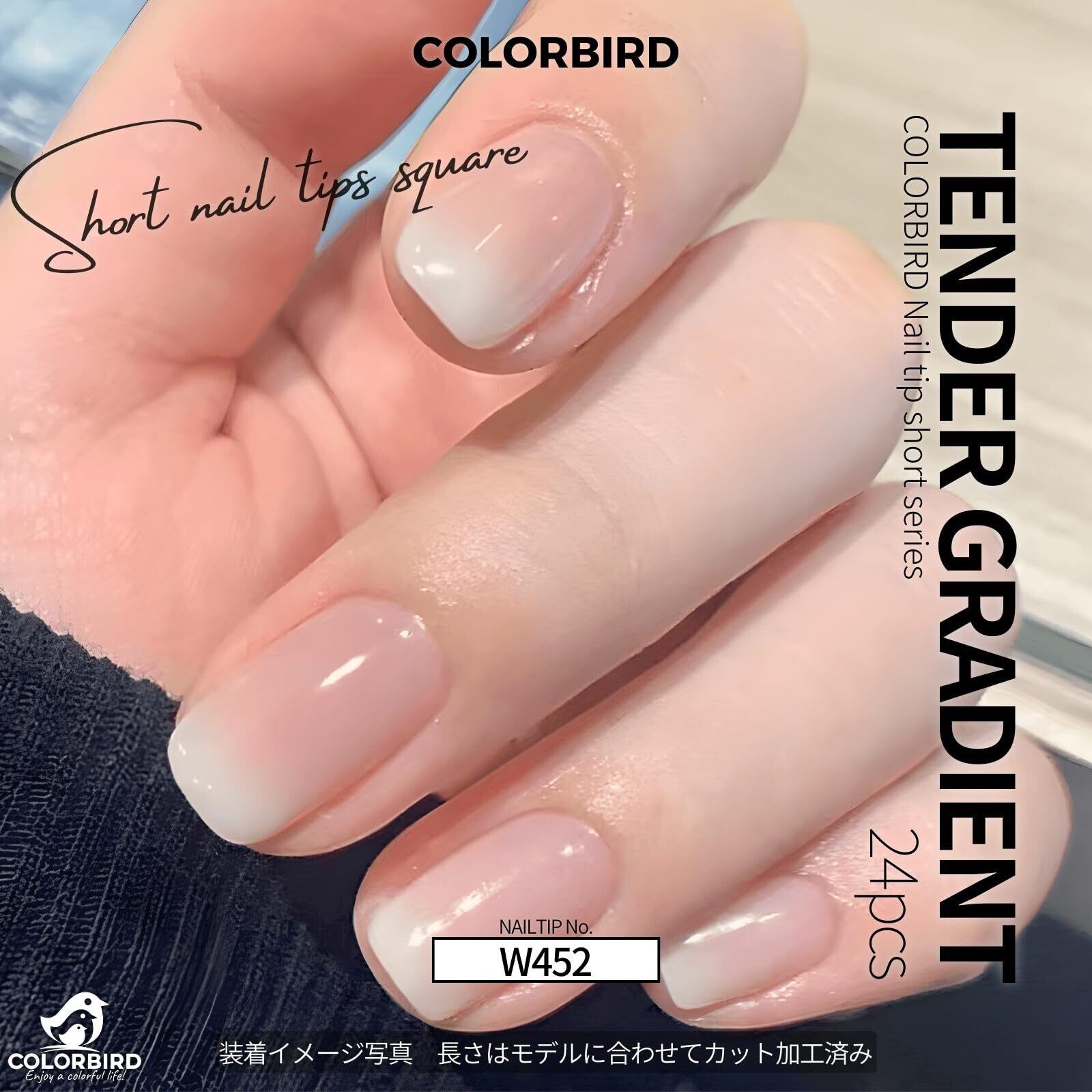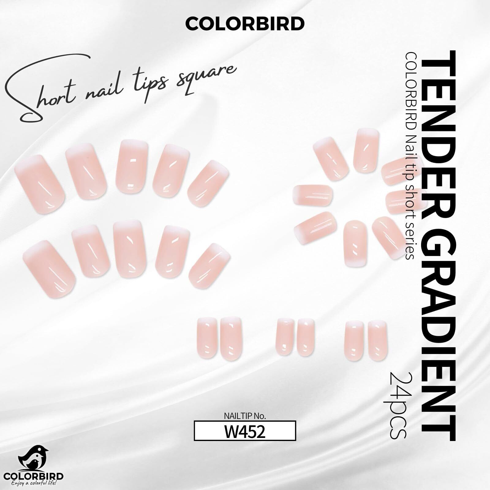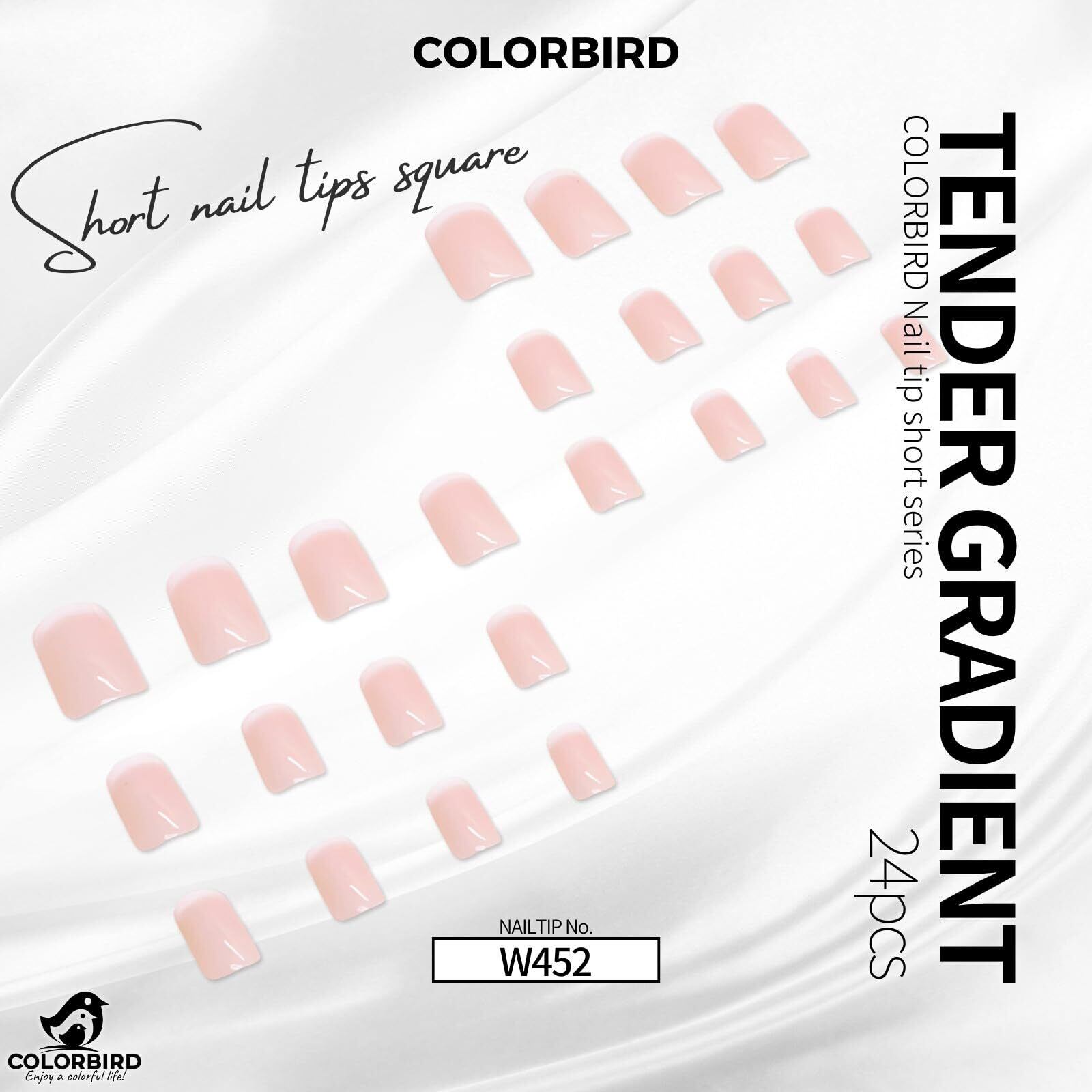 COLORBIRD ネイルチップ ショート 24枚 ピンク ネイル 付け爪 チップ 短め 可愛い スクエア (W452)