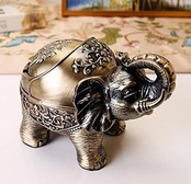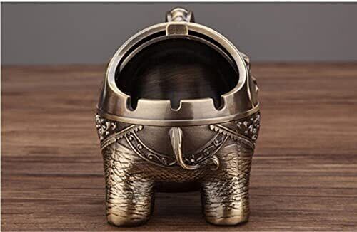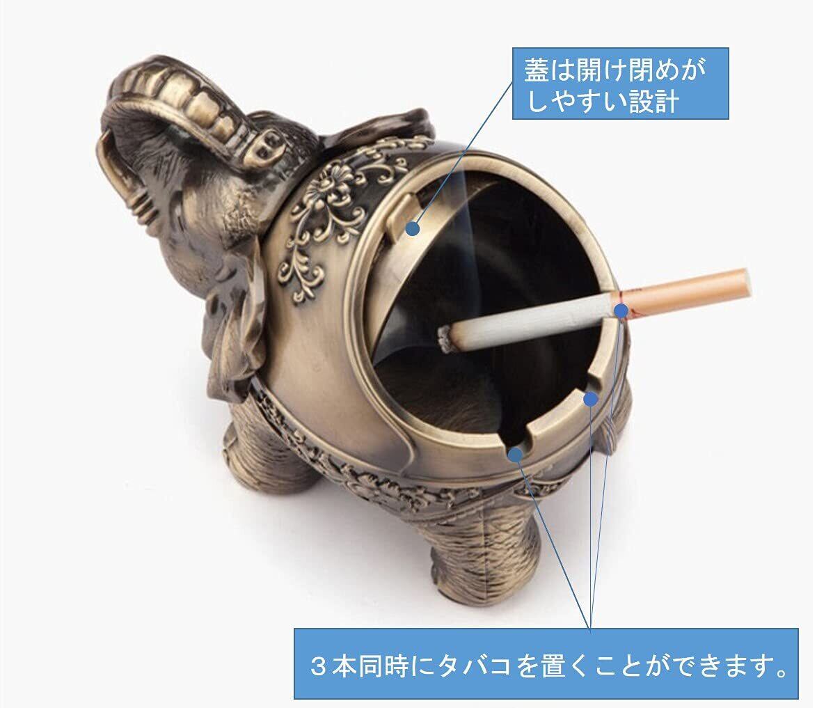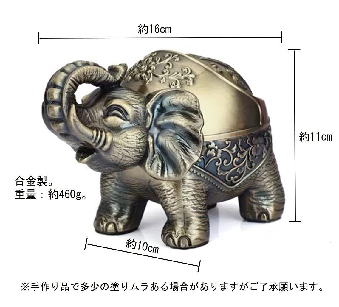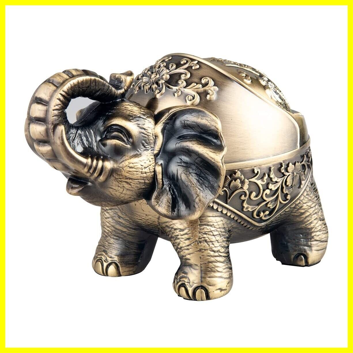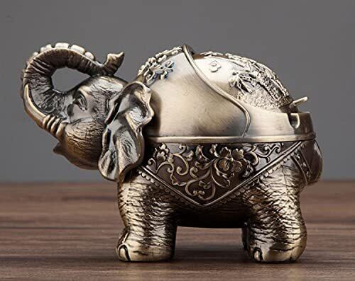 灰皿 蓋付き灰皿 卓上灰皿 合金ボックス 収納ボックス 合金製 アンティーク調 卓上 屋外 店舗 オフィス 置物 インテリア (象の型)