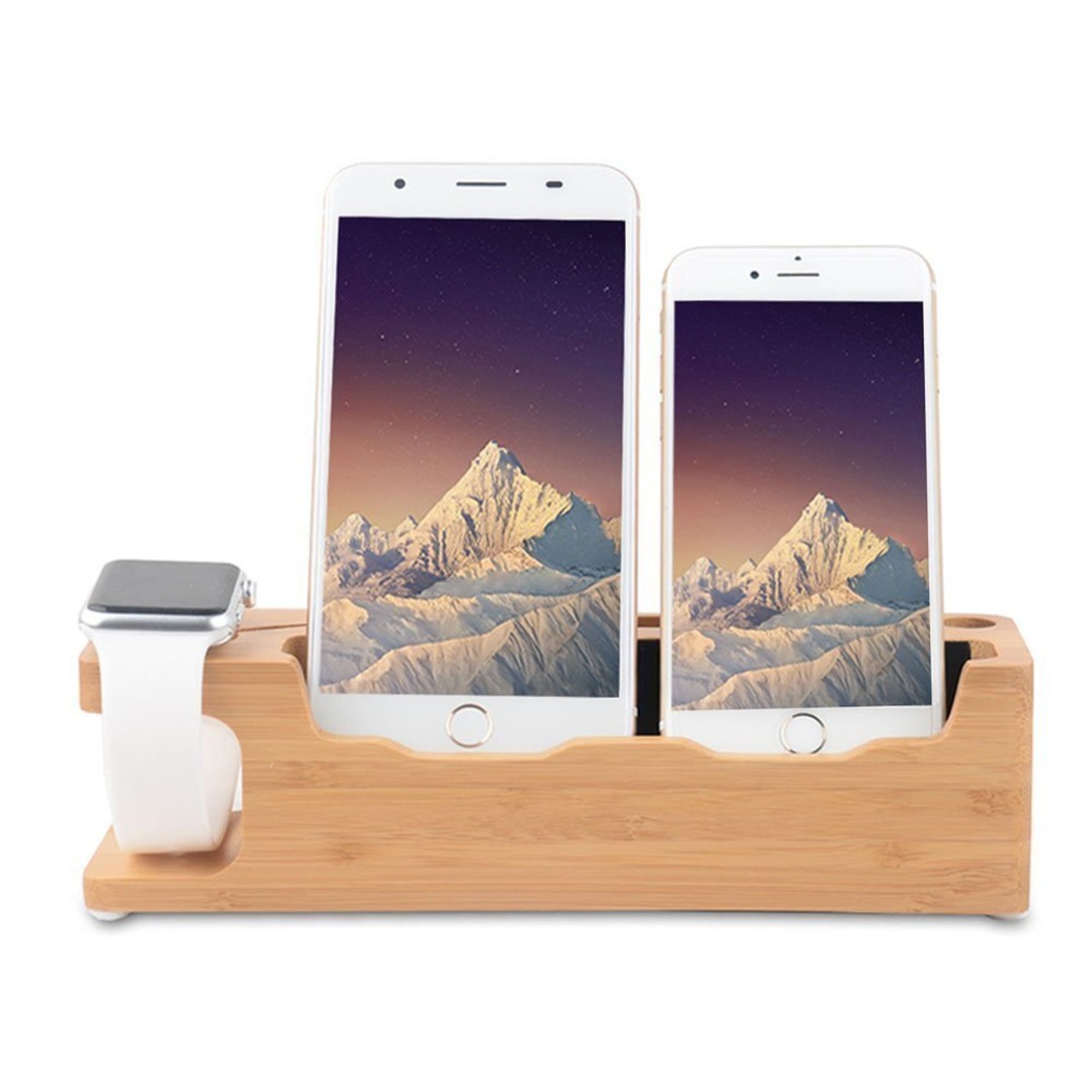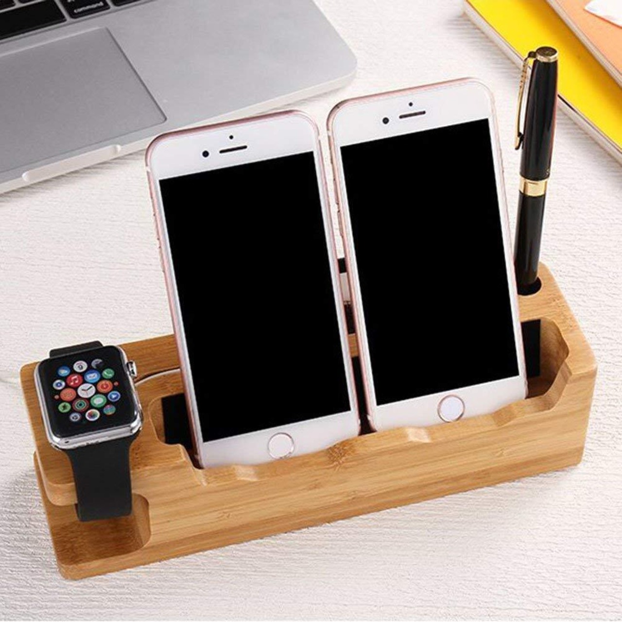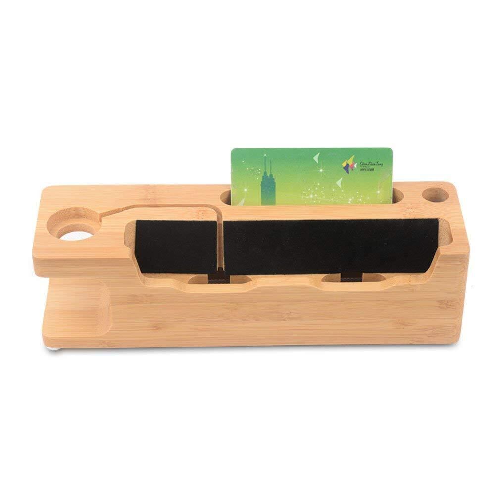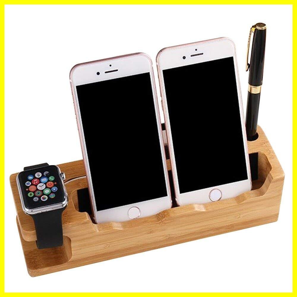 充電スタンド 竹製 スマホスタンド 木 充電 タブレットスタンド 卓上 Apple Watch スタンド 3 IN 1 多機能 充電スタンド 名刺収納 ペン立て iPhones/iPad/Nexus/Galaxy/タブレットPC スマートフォンなど充電対応 (A)