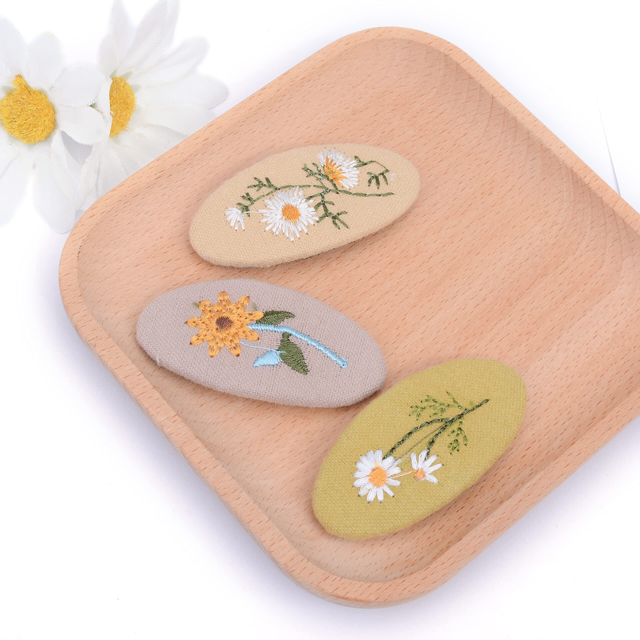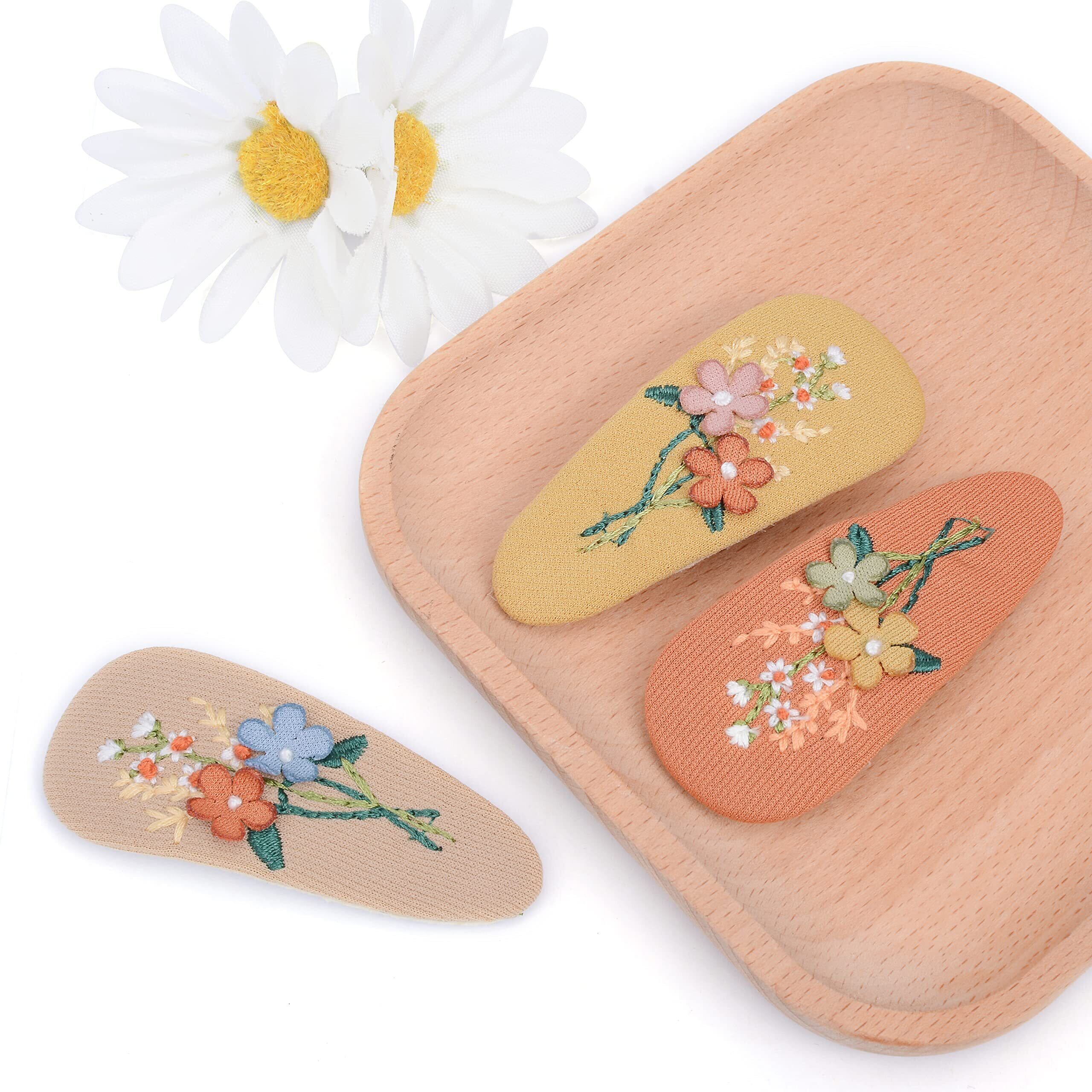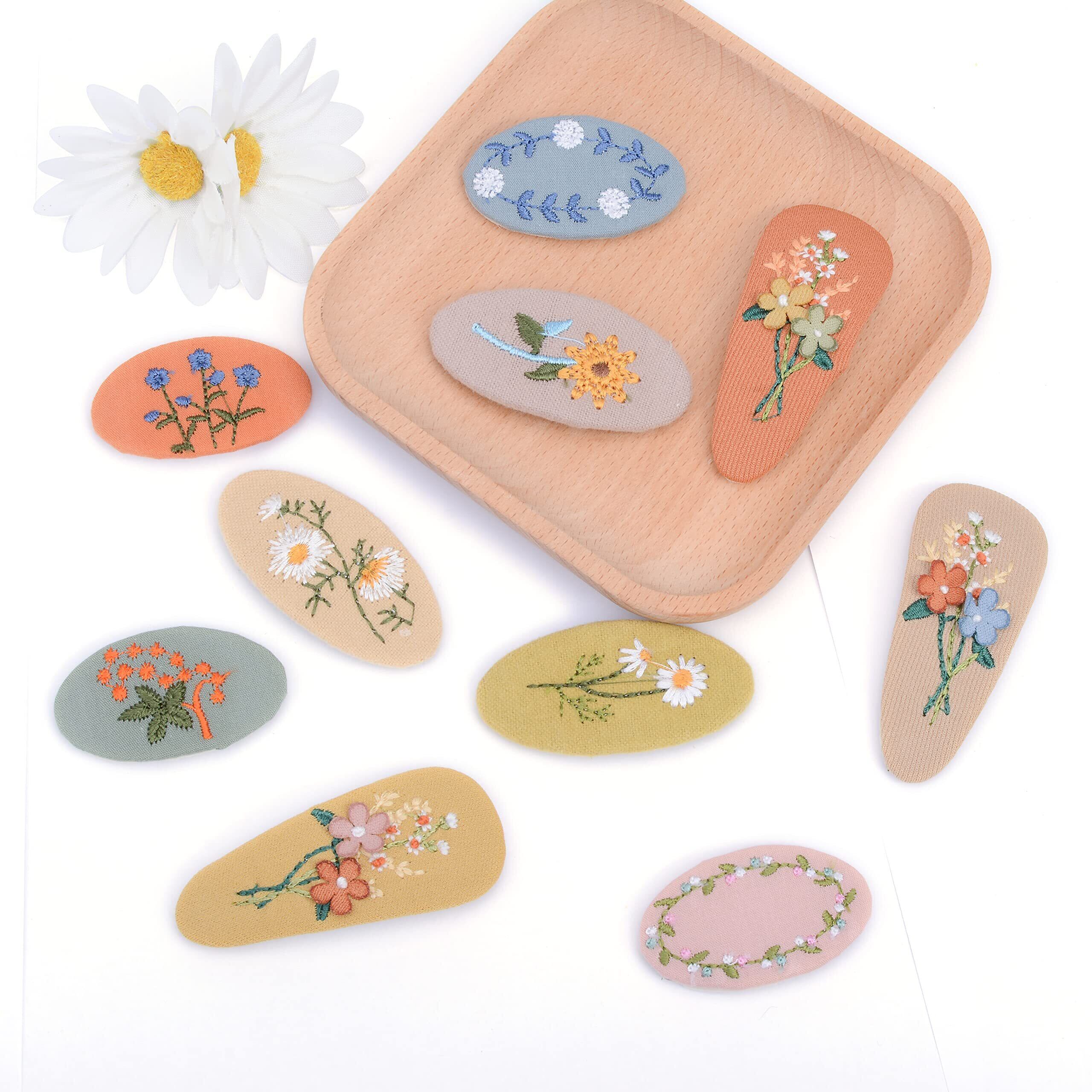 刺繍っぽいデザインがおしゃれなヘアクリップ。花の模様とほんのり淡い色合がフェミニン感をだだよわせます。