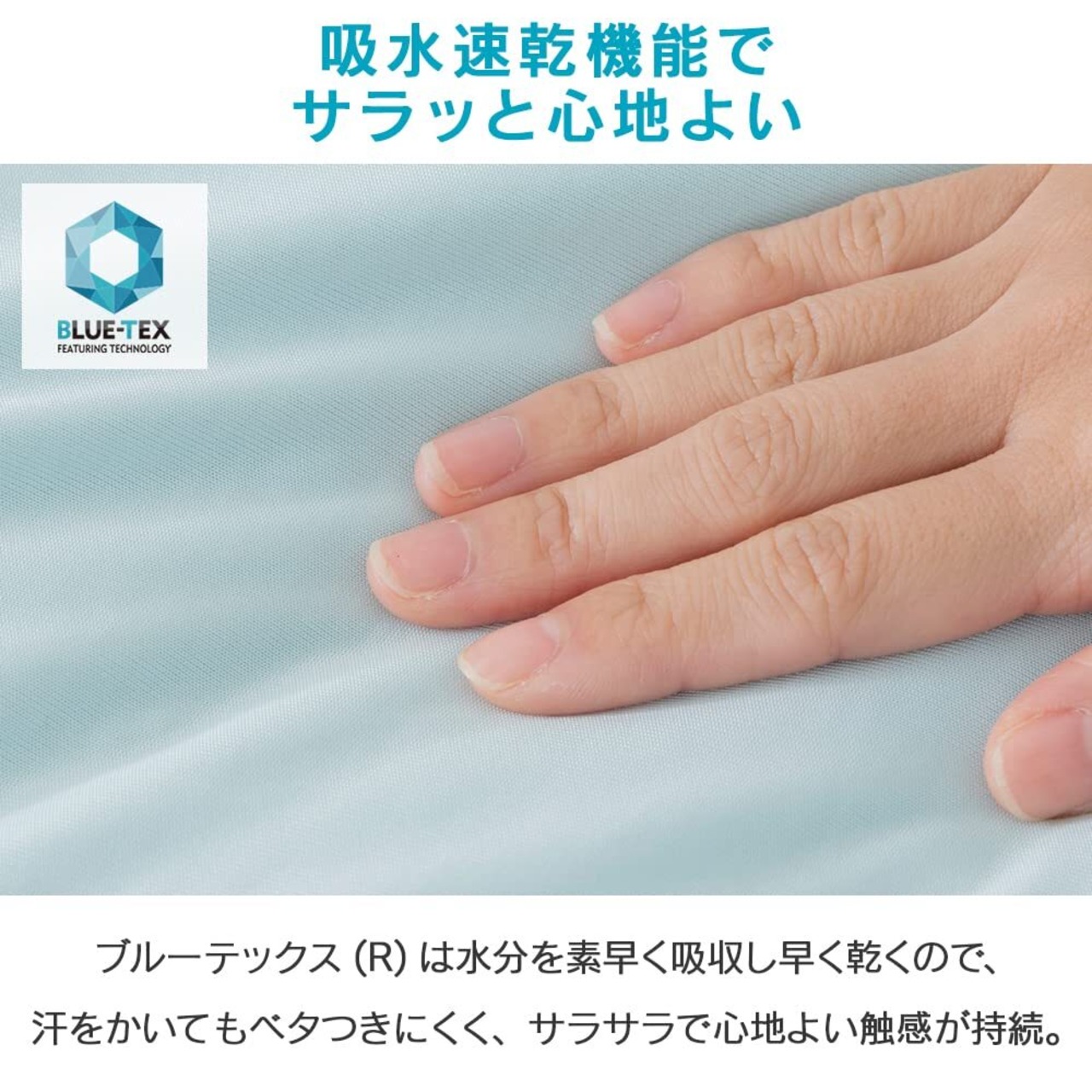 表生地にはナイロン100%の接触冷感性の高い素材で織った肌触りが肌着のようで、しなやかな感触のニット素材[BLUE-TEX]を使用しています。