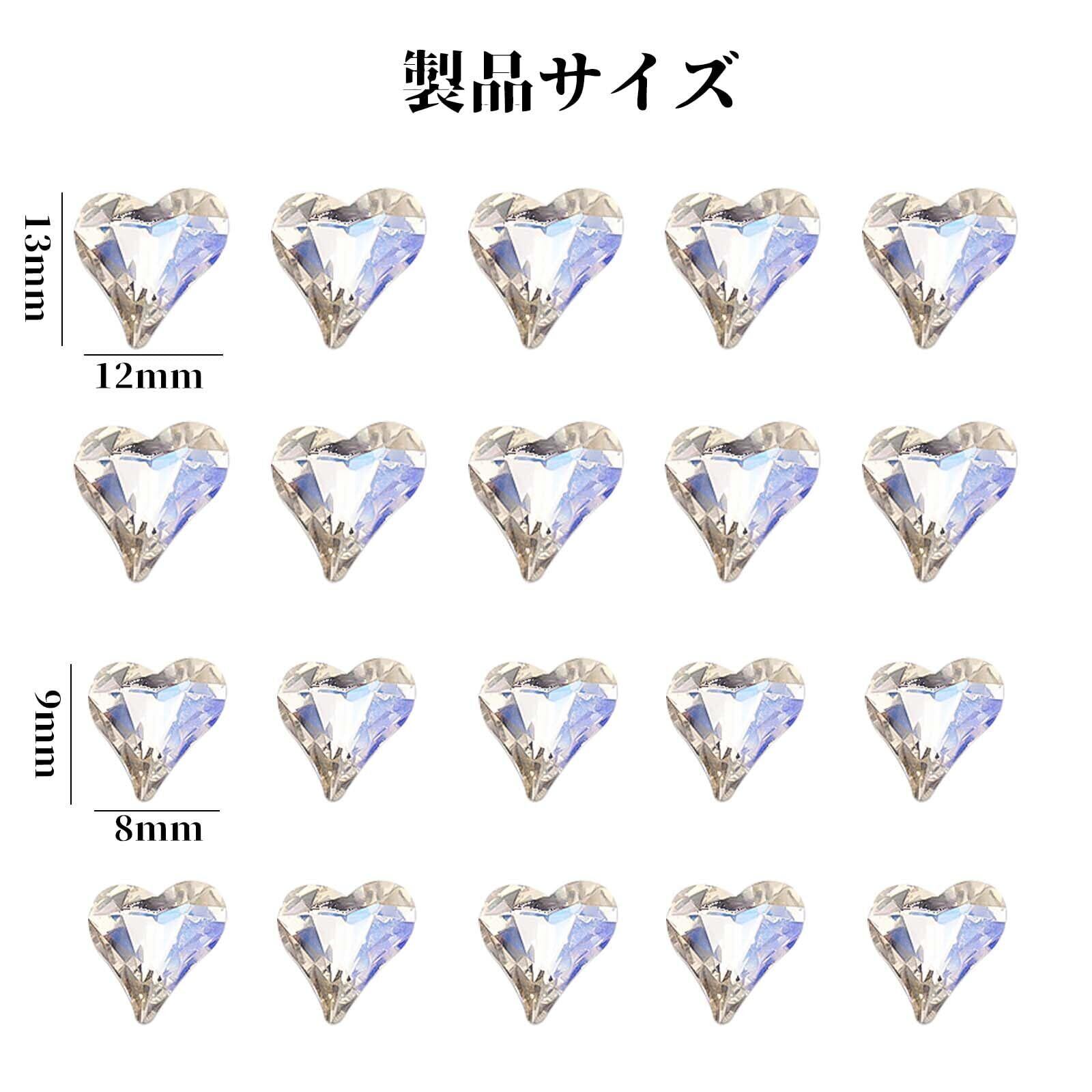 ネイルパーツ ハート (20個セット) ネイル ガラスストーン ネイルパーツ ストーン ジェムラインストーンネイル キュートハート型 2つのサイズ 大きめ 3D DIY キラキラ (8mm×9mm、12*13mm)