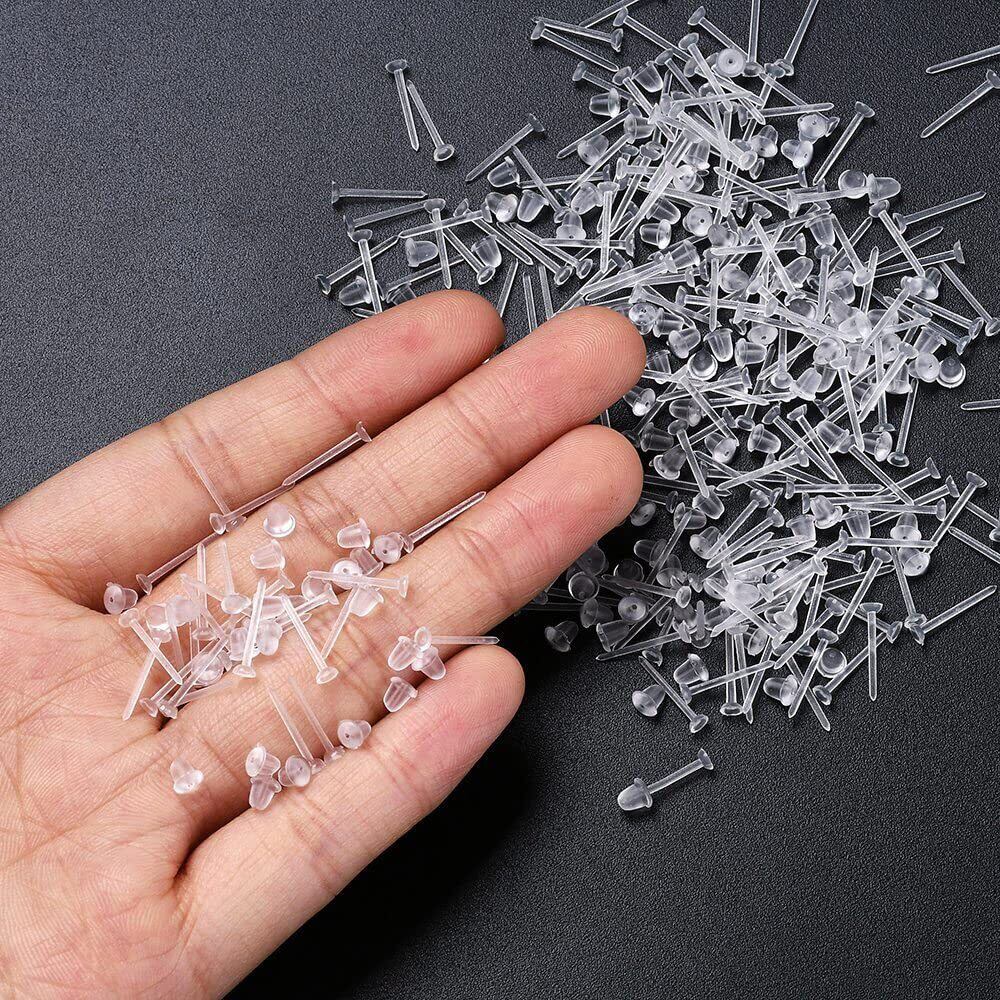 セット内容:透明ピアス300セット(耳棒+こていそうち)。サイズ:耳棒:12MM、こていそうち:4MM。