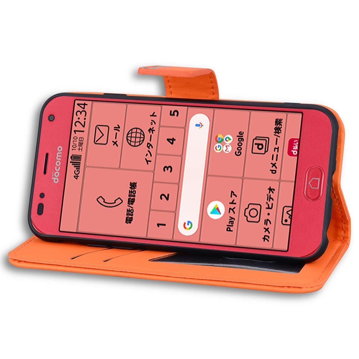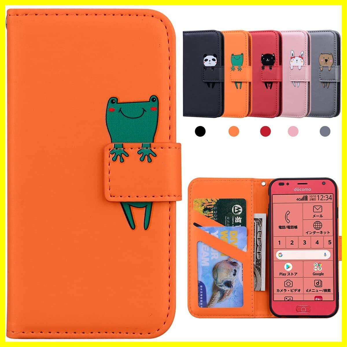 に適合する らくらくスマートフォン F-42A ケース 手帳型 らくらくスマートフォン me F-01L ケース 可愛い F42A手帳型ケース らくらくホンf-42a 携帯カバー F-42A F01L スマホケース カード収納 財布付き カードホル スタンド機能 me f01l / f42a スマホケース かわいい 動物柄 薄型 防水 ノート型 男女兼用 (オレンジ)