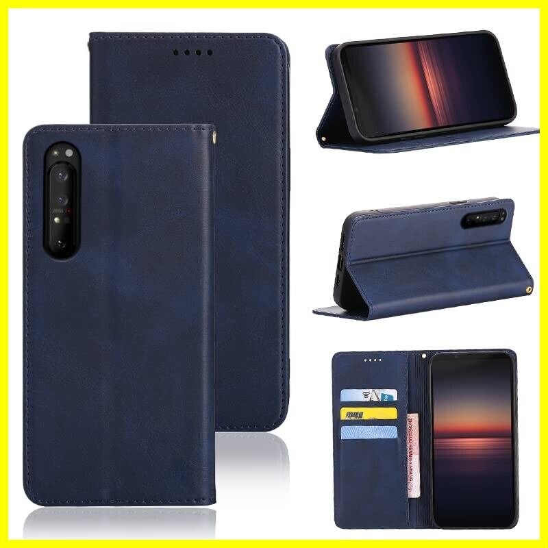 適用 Sony Xperia 1 II ケース 手帳型 適用 エクスペリア 1 II / SOG01/ SO-51A 手帳型 ケース カバー PUレザー カード収納 財布型 耐衝撃 ケース マグネット スタンド機能付き 5色 (適用 Xperia 1 II / SOG01/ SO-51A ケース 手帳型) (深い青)