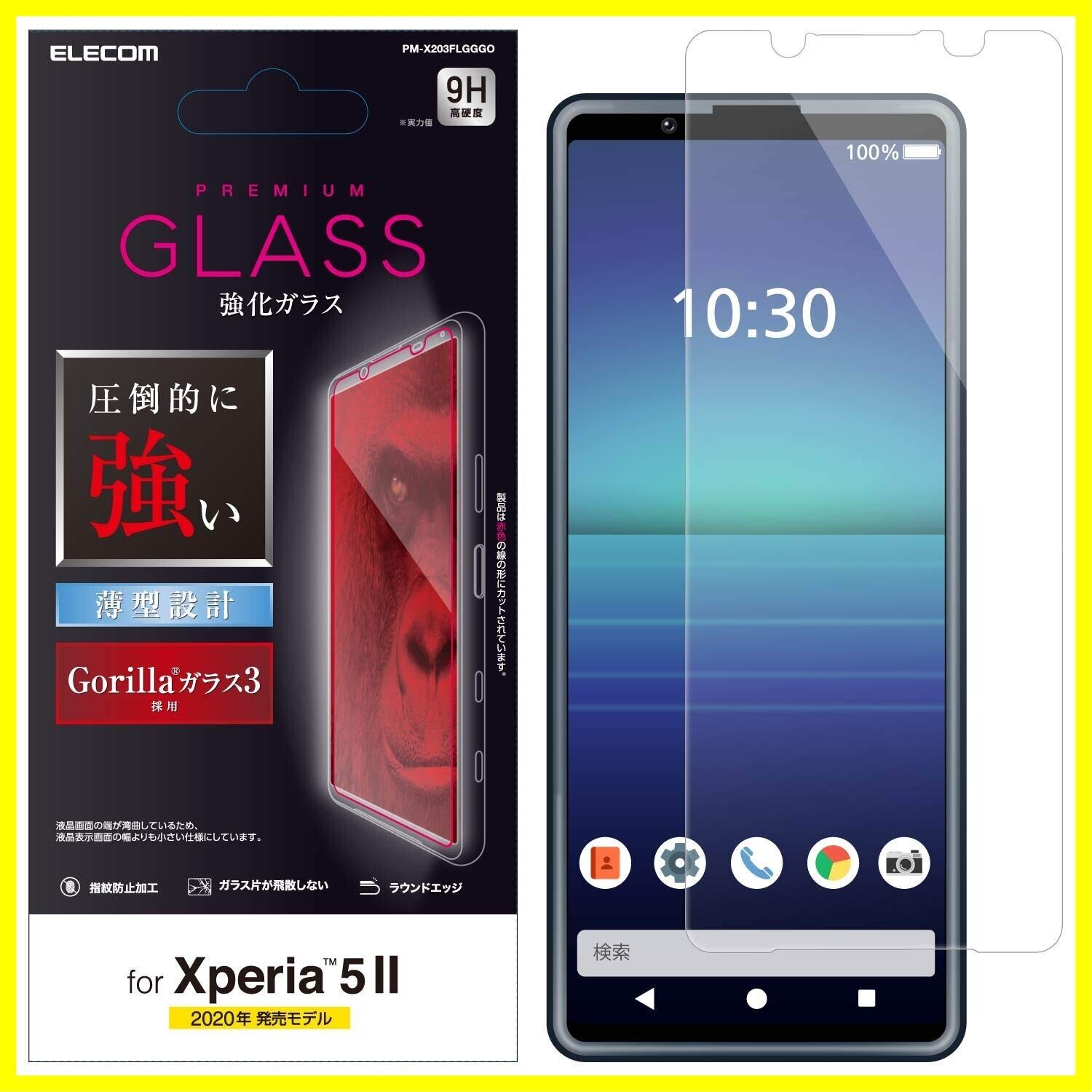 エレコム Xperia 5 II フィルム 強化ガラス 【高硬度9Hで画面を守る】 PM-X203FLGGGO
