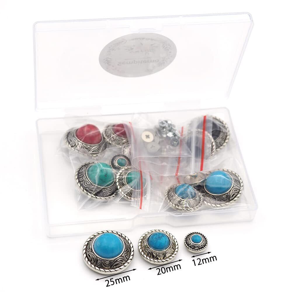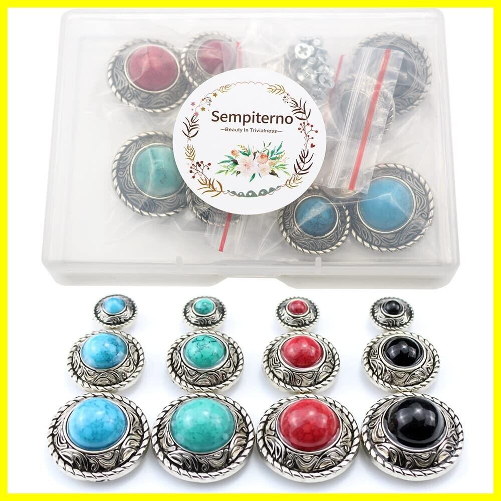 sempiterno コンチョ ボタン 12個セット シルバー ターコイズ ネジ式 12mm 20mm 25mm レザークラフト 財布 ヴィンテージ装飾バックル 手芸 バッグ飾り用ボタン ハンドメイド DIYの手工芸品 (アンティークシルバー)