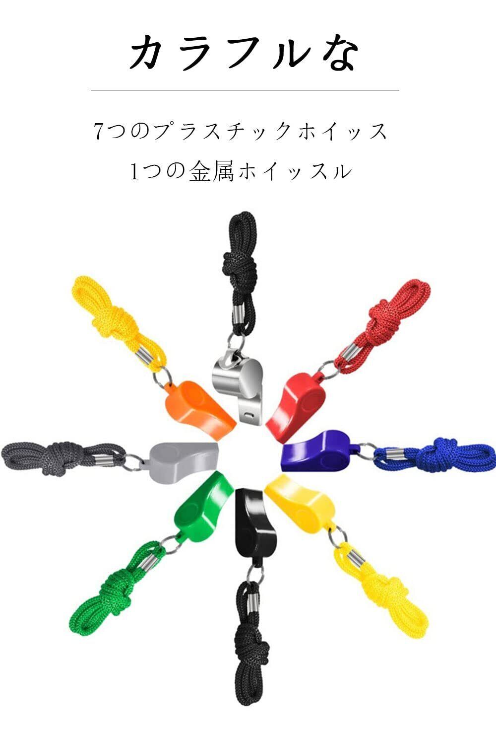 ✿【カラフルなホイッスル】 パッケージには7つのプラスチックホイッスルと1つの金属ホイッスルが含まれており、さまざまな色があり、使用時のさまざまなニーズや好みを満たすことができ、より経済的です。