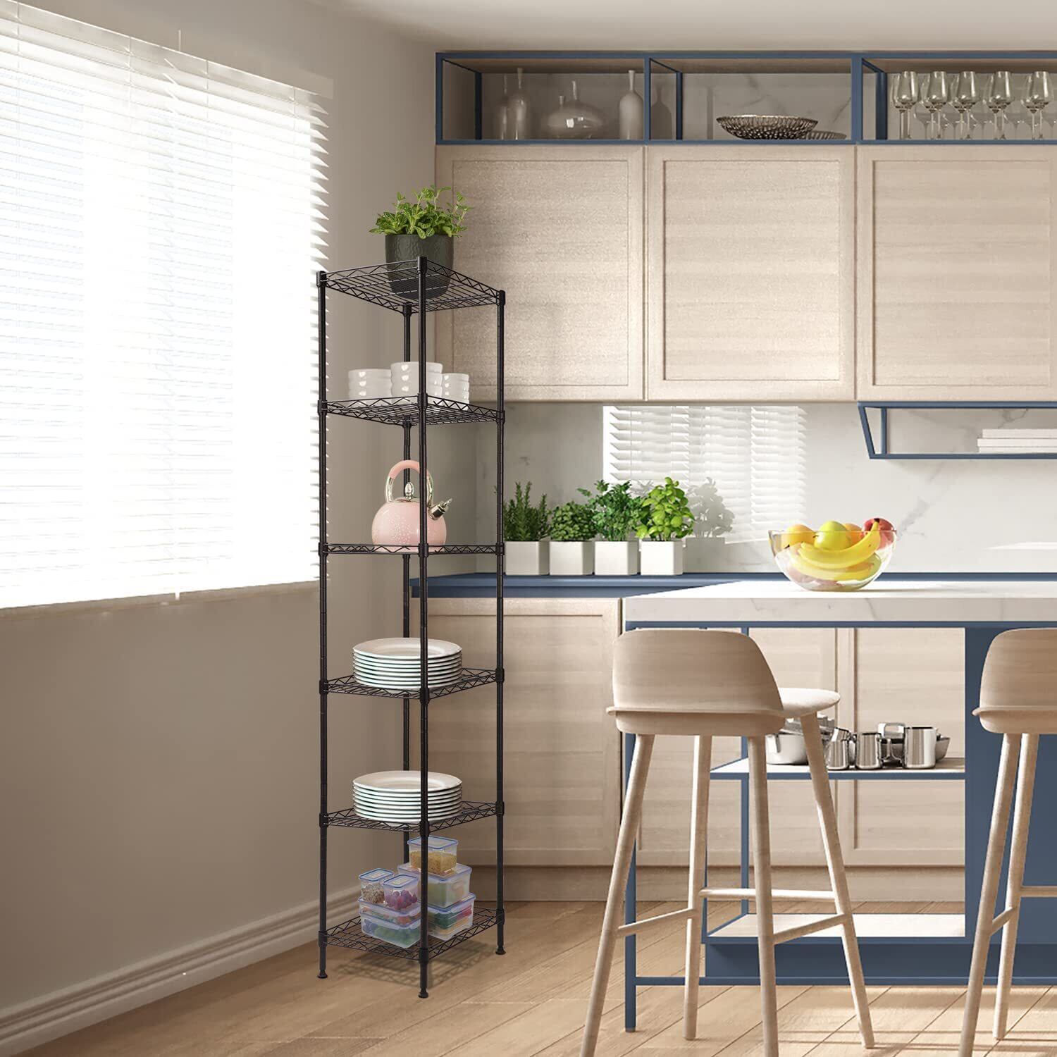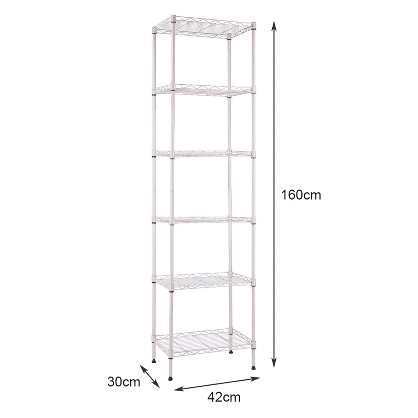スチールラック レンジ台 キッチンラック 収納ラック キッチン 整理棚 本棚 シェルフ棚 メタル製 メタルラック 高さ調節 42cm×奥行30cm×高さ160cm (ホワイト 6段)
