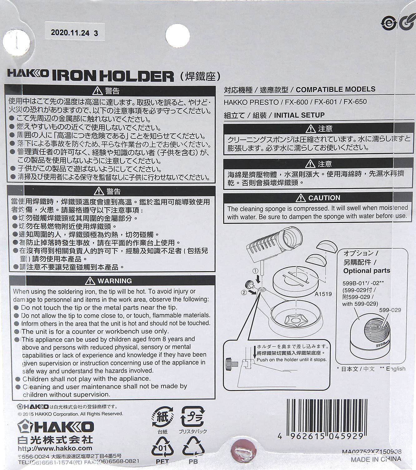 白光(HAKKO) ペンシル こて台 FX-600/FX-601/PRESTO/DASH用 FH300-81