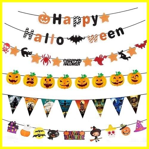 ZOYUBS ハロウィン 飾り ガーランド ハロウィンガーランド ハロウィン壁 飾り ハロウィーン 飾り付け ハロウィングッズ ハロウィーン 装飾 リスマス吊り旗 吊り旗ぶら下げバナー デコレーション HAPPY HALLOWEEN吊り紙 ハロウィンパーティー デコレーション 飾り付け フラッグガーランド 三角旗 カボチャ お化け屋敷・ハロウインパーティー・学園祭・ホラー系パーティードア・テーマパーティー ガーランド 装飾 ぶら下げ 居酒屋 天井飾り 壁飾り 看板 ドア窓ぶら下げ ハロウィンパーティーの休日 お祭りの環境 窓壁装飾用品スクロールフラグ 窓 ドア 壁 オフィス 家 パーテイー小物 オーナメント(5本セット)