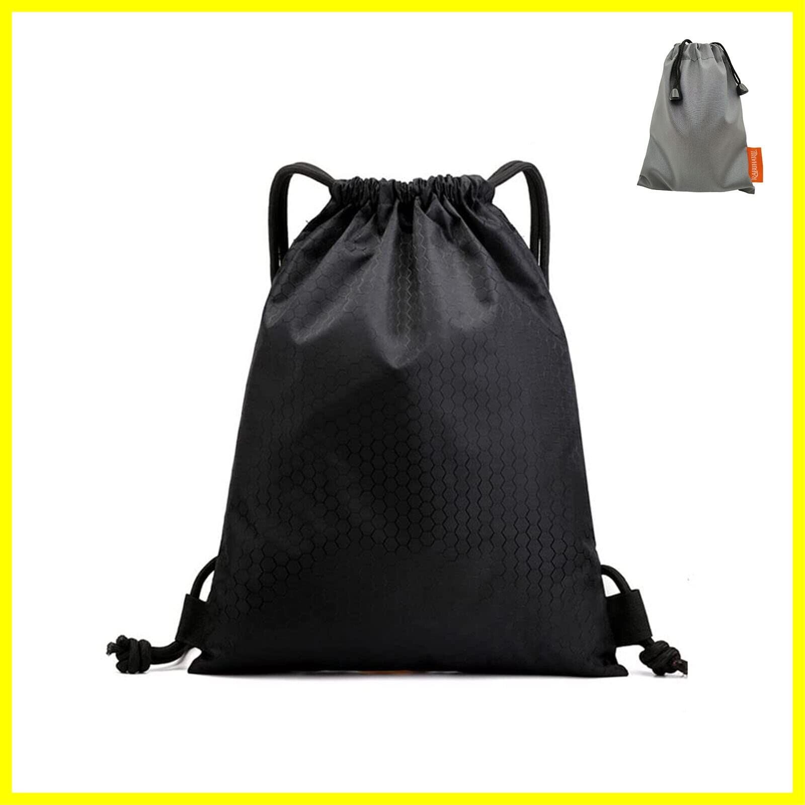 [RABUHARU] ジムサック スポーツバッグ ナップサック リュックサック 防水バッグ ケース 巾着 シューズ収納 軽量 水泳 部活 サークル 運動 旅行 キャンプ 小物防水袋1枚つきブラック