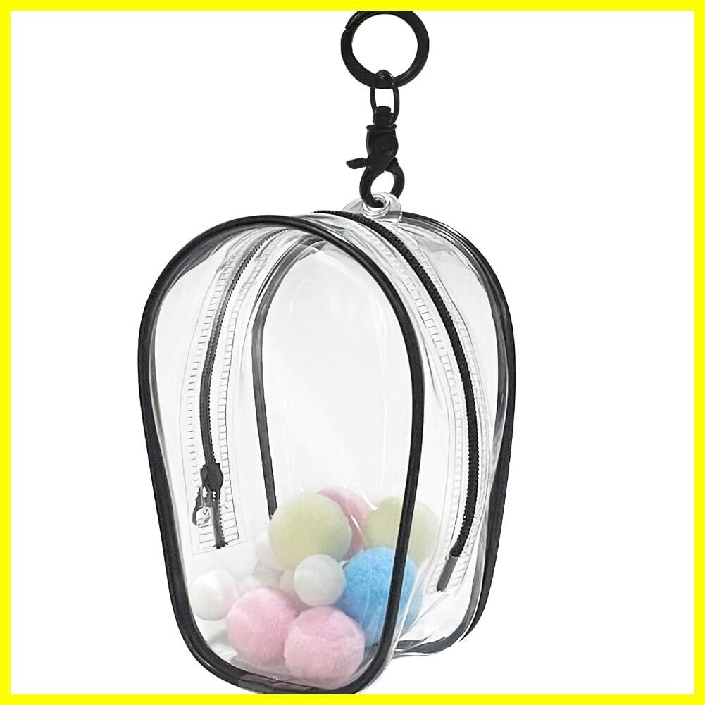 YUYAKESHI 痛バック 防塵ケース ぬいポーチ 頭でっかち型 見せバッグ 外出 人形入れ 10cmぬいぐるみ用 透明 綿人形用 キーホルダー付 13cm高(ブラック)