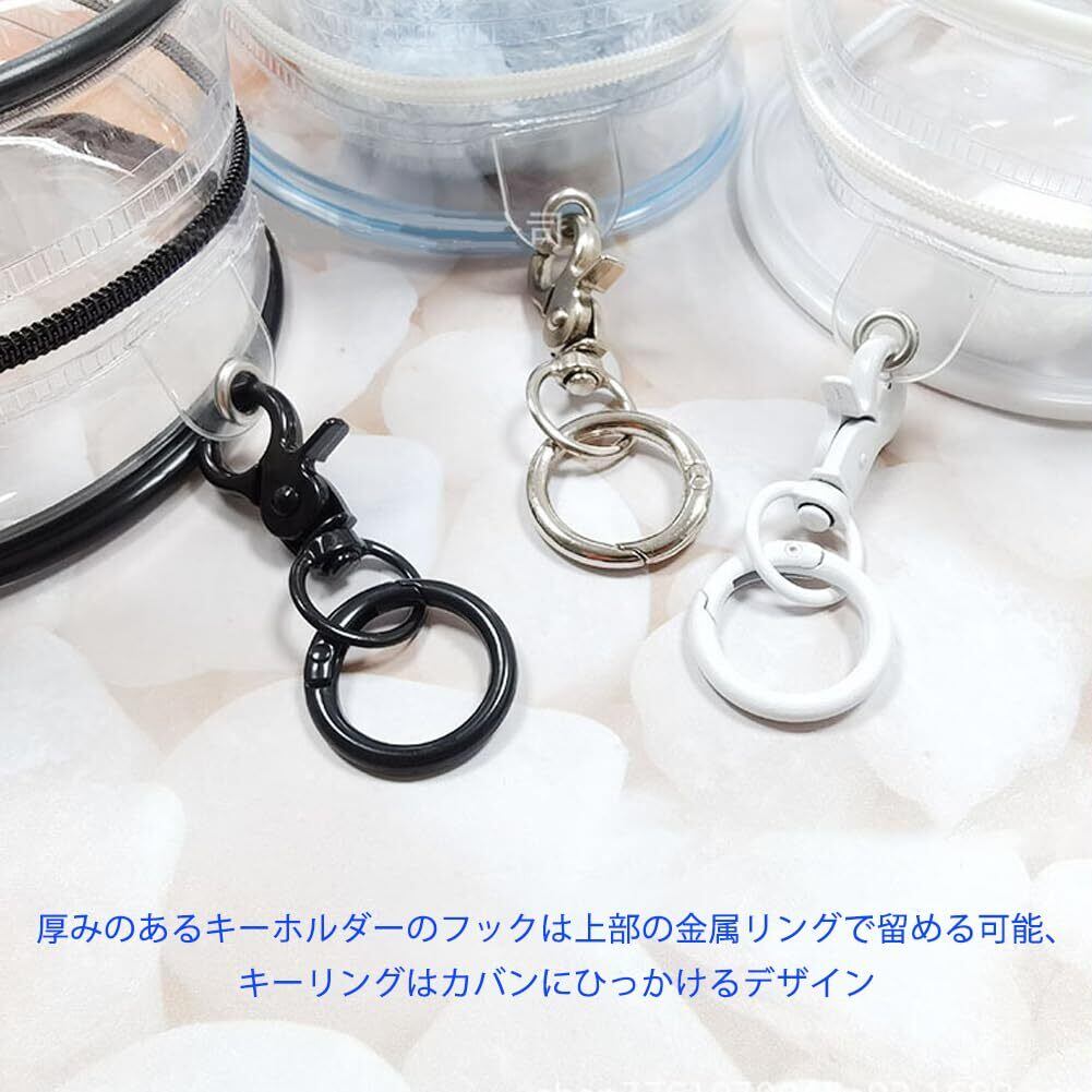 【外観】可愛い頭でっかち型ぬいぐるみポーチは透明なPVCを採用して、耐久性があり、ジッパー式。厚みのあるキーホルダーのフックは上部の金属リングで留める可能、キーリングはカバンにひっかけるデザイン。ポンポンボール付き、いらない場合は取り出してください。