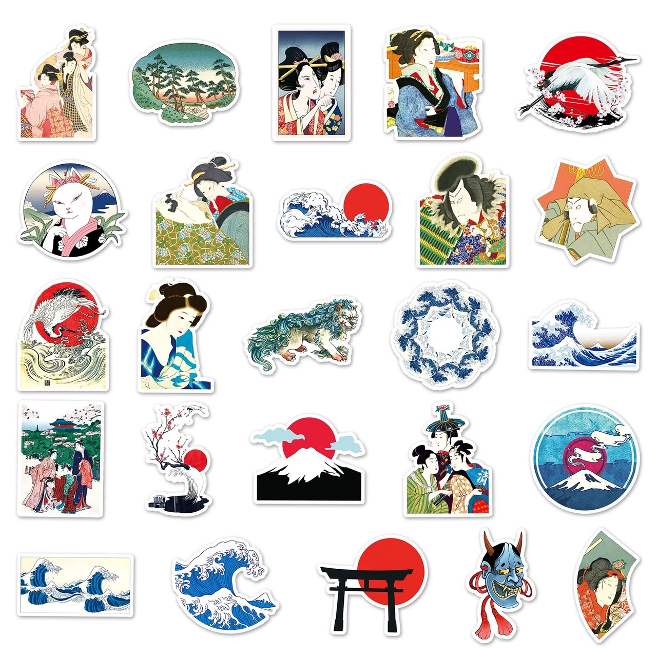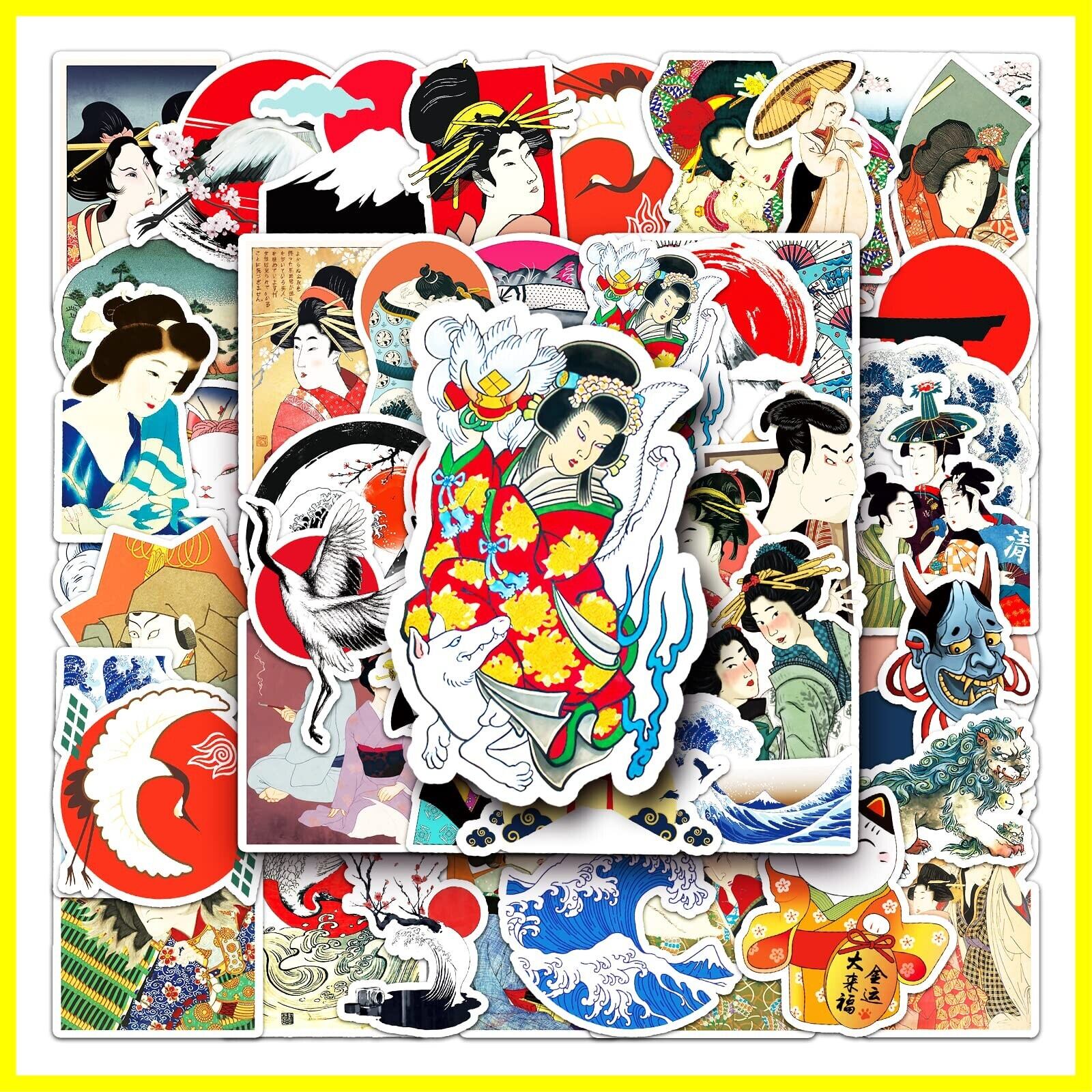 浮世絵ステッカーセット 50枚 日本伝統文化 浮世絵防水ステッカー シールパック ブランドステッカースーツケース 車 バイク ヘルメット スケボー ギターなどに適用