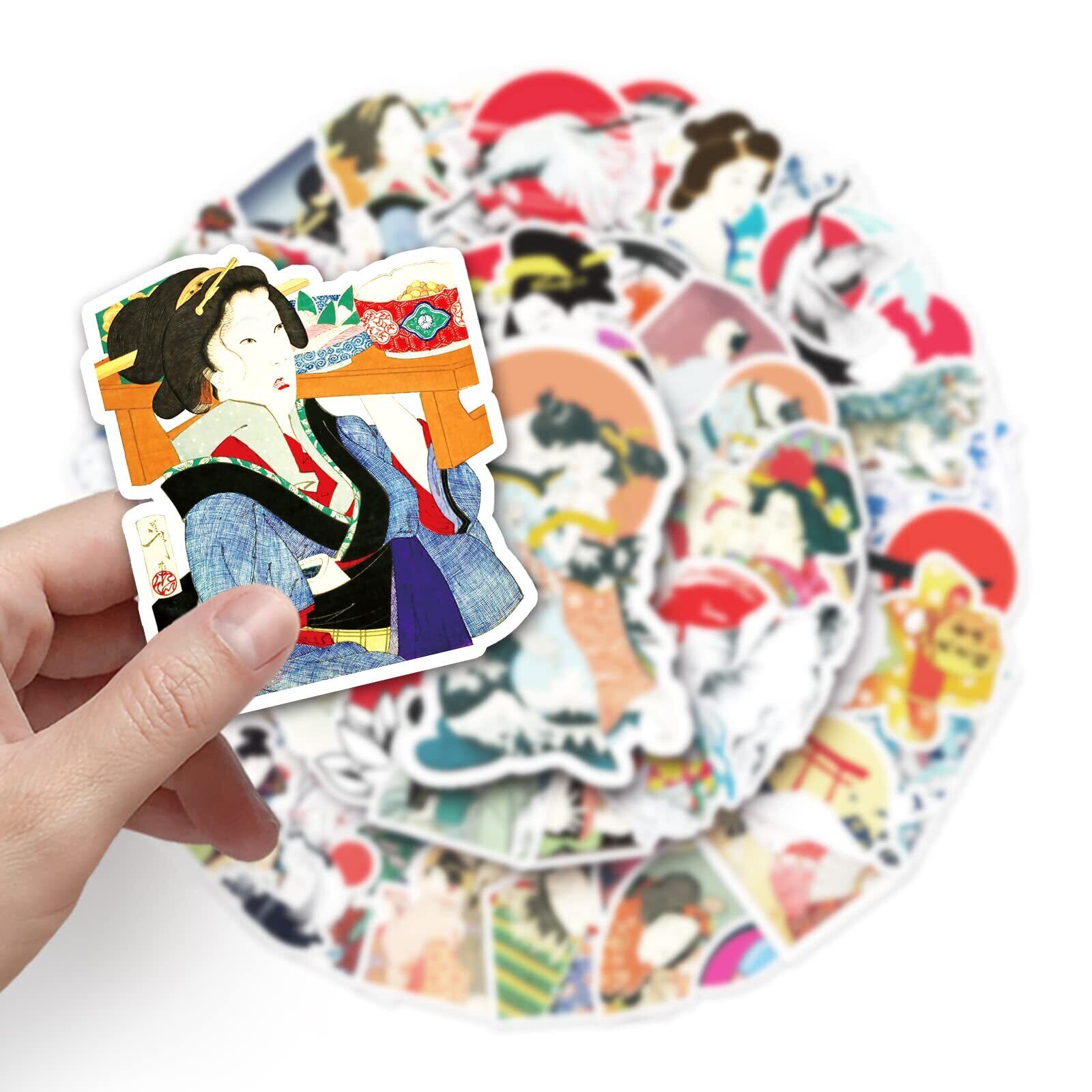 【お買い得セット】一枚も同じくはない50枚セットで、様々な選択ができ、非常にお買い得な浮世絵ステッカーパックです。
