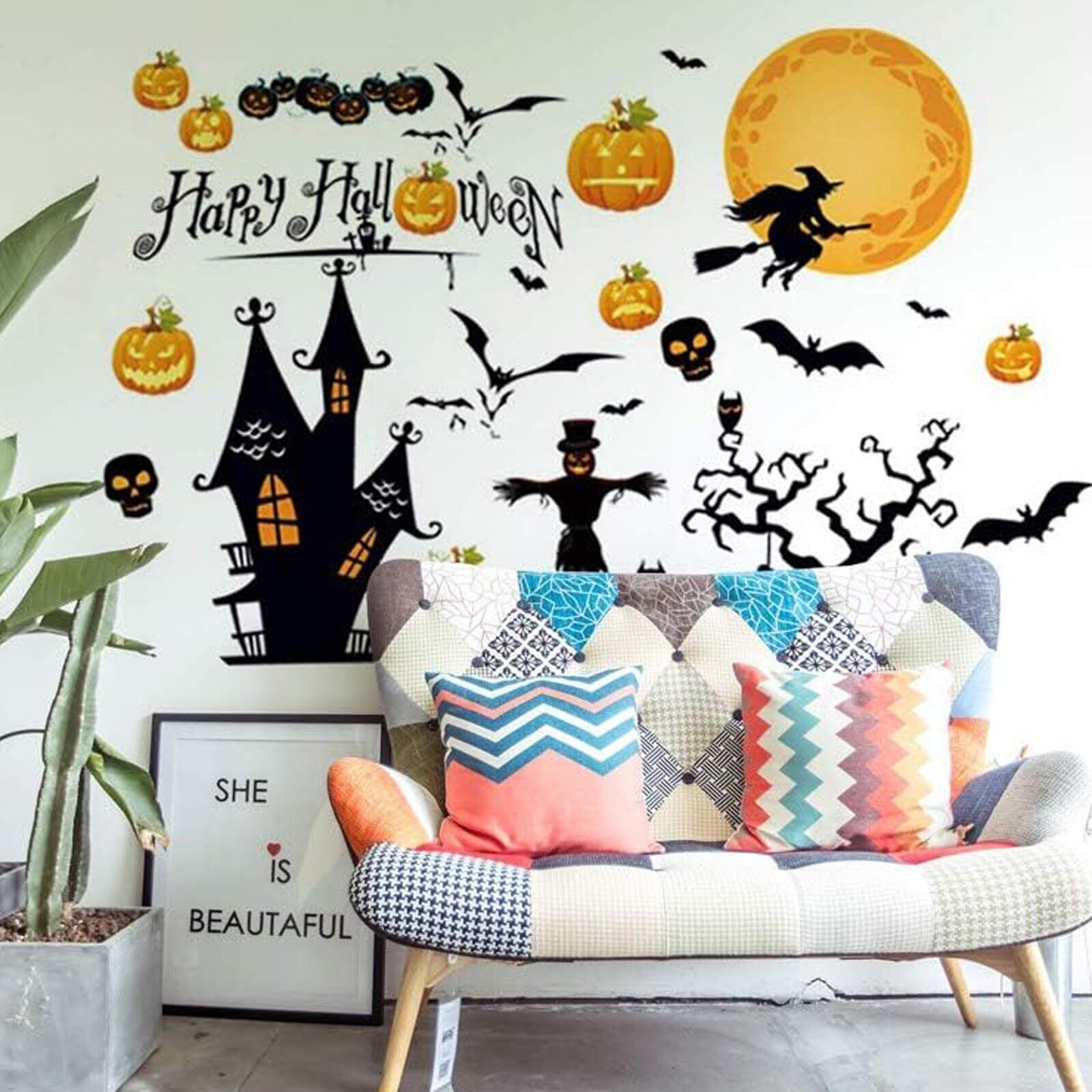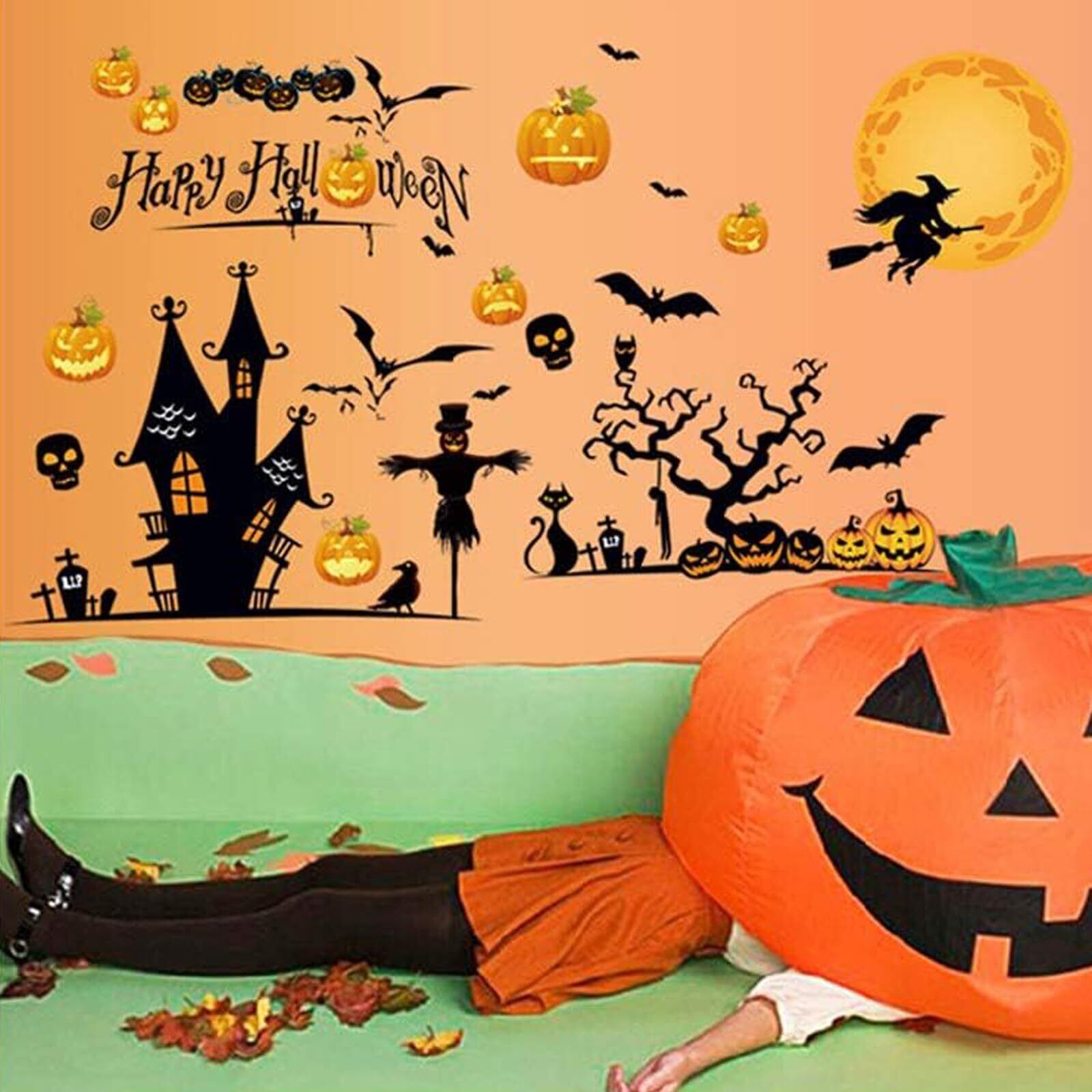 ハロウィン 飾り-貼り付けと剥がしが簡単:ハロウィン 飾りステッカーを簡単に貼り付けるための各テーマのデザイン提案が含まれています。 ハロウィン ウォールステッカー簡単に貼り付け、剥がすことができ、粘着性の残留物が残りません。壁や窓を傷つける心配はありませんハロウィン ウォールステッカー