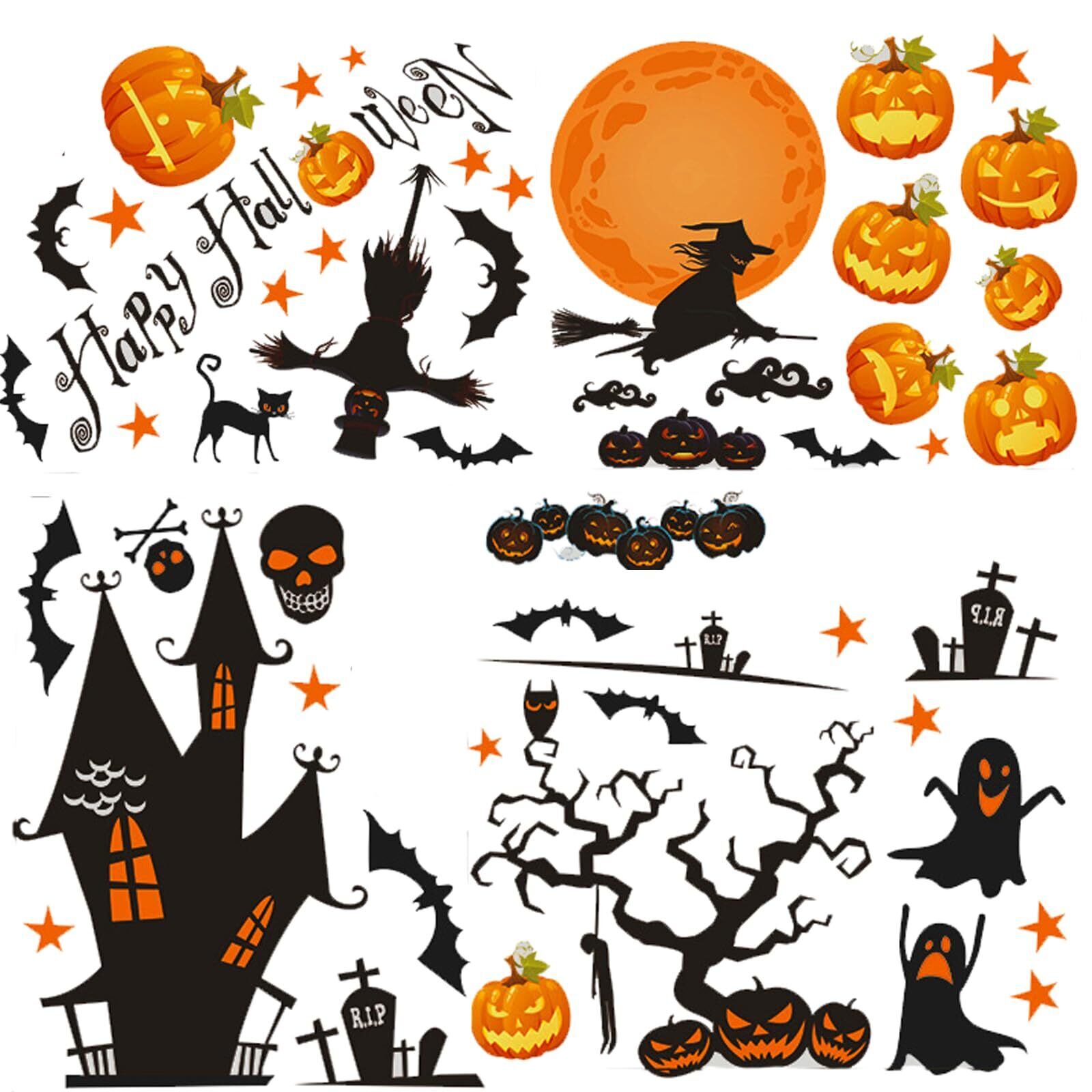 ハロウィン ウォールステッカー 52枚入り(30*37cm)跡が残らず簡単に取り除くことができます壁紙シール ウォールシール インテリア 窓 飾り物 魔女 蜘蛛 コウモリ おばけ コスプレの背景に