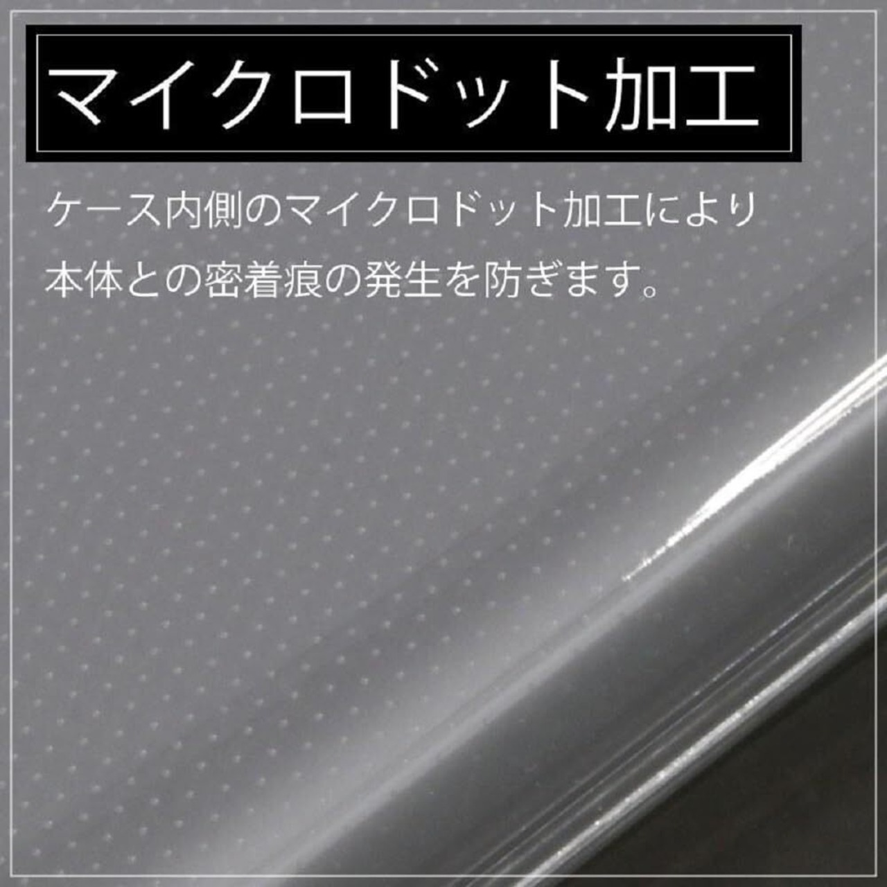ケース内側のマイクロドット加工でケースと本体の密着痕の発生を防ぎます。