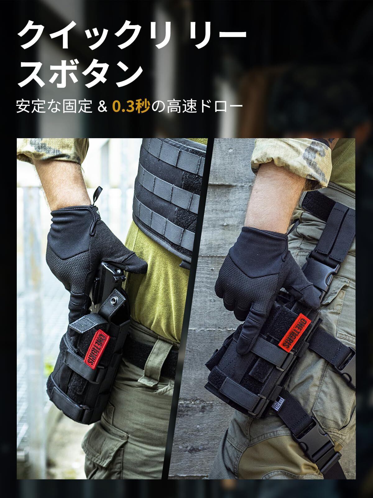 特別なデザイン:ホルスター表面にもマジックテープを縫い合わせワッペンを自由に装着できるようにいたしました! これによりホルスターについているワッペンで部隊を特定できます。