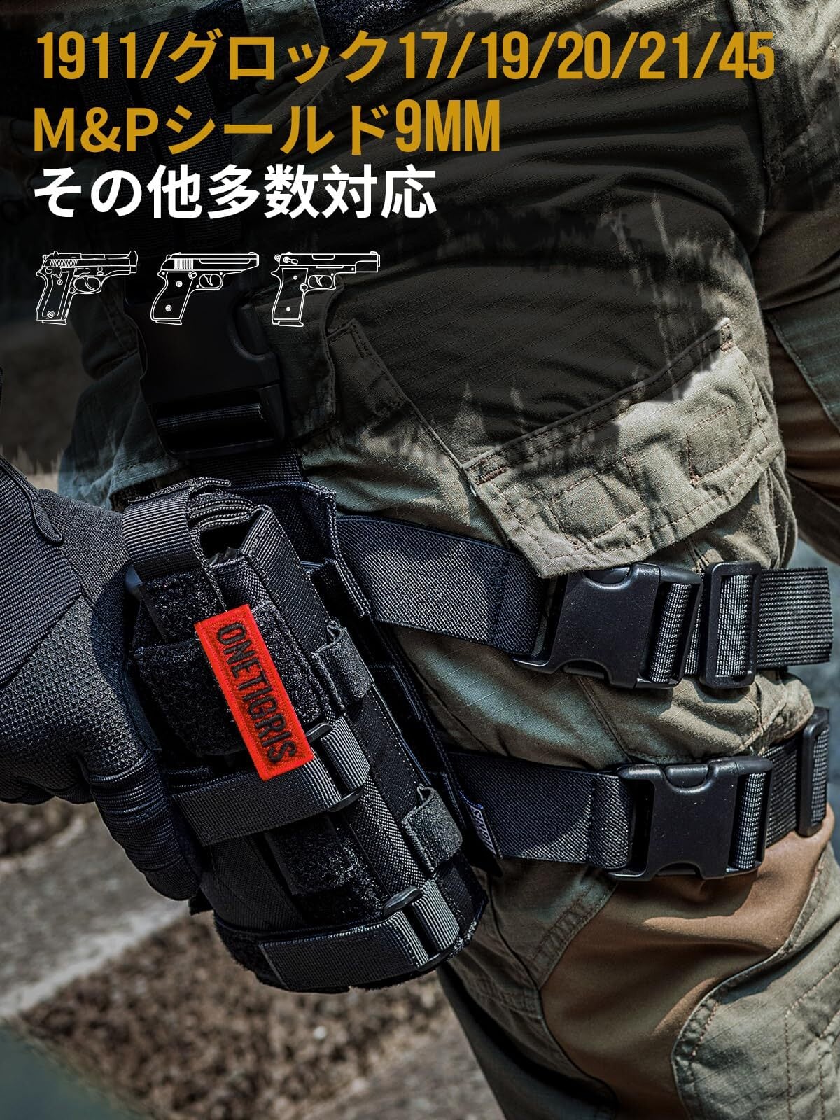 OneTigris ハンドガンホルスター タクティカルギア ポーチ ピストル・グロック用 右用 マジックテープ仕様 ナイロン MOLLE対応 サバゲー・スナイパー