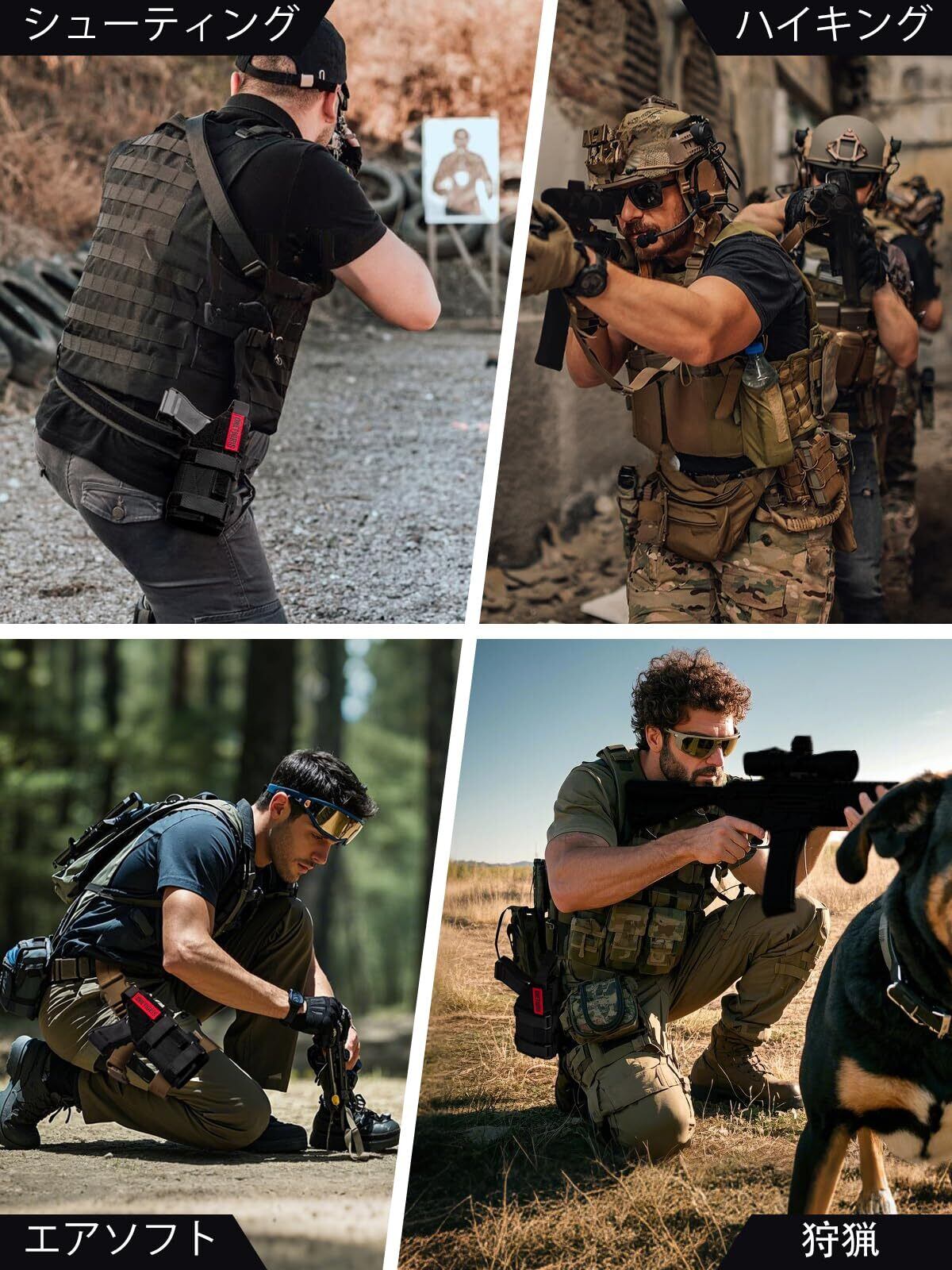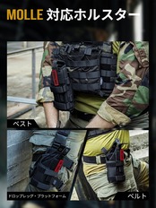 しっかり固定:落下防止のMOLLE付きので、しっかりと取り付けでき、ベルトやレッグリグやチェストリグなどに取り付け可能、フィールドで走り回っても大丈夫です。