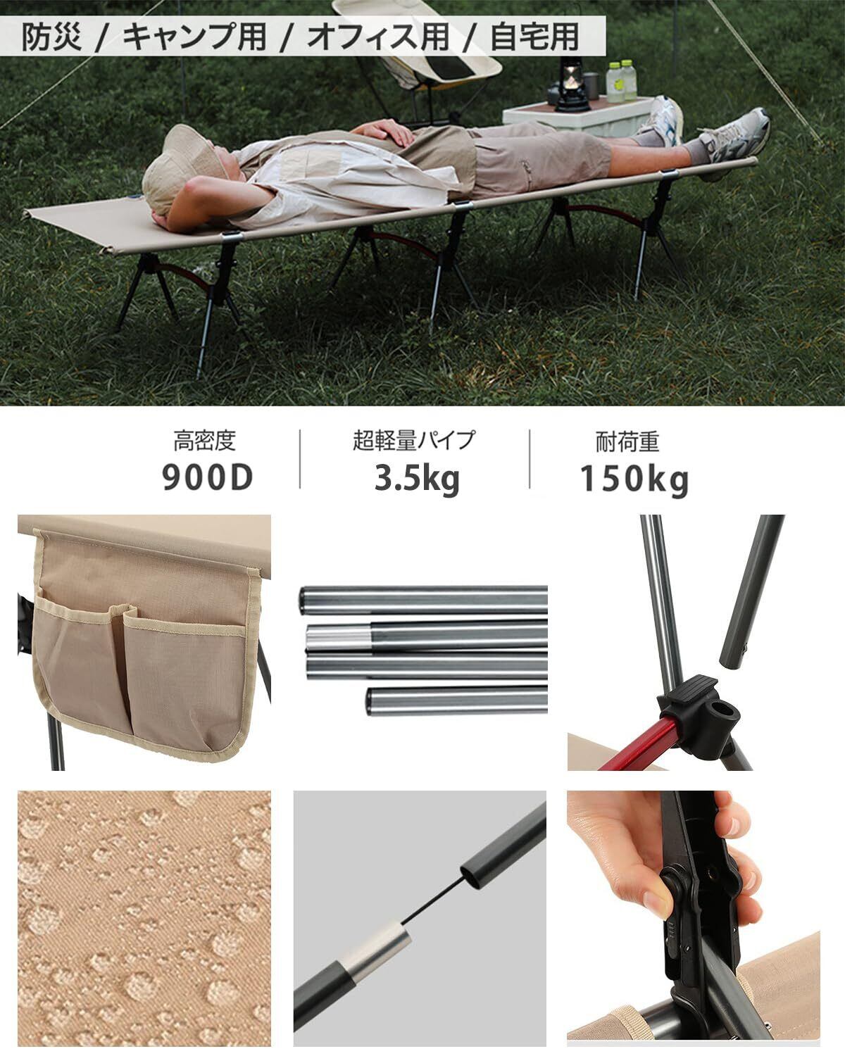 【2wayコット、高低兼用】お客様からフィードバックされた分解という難題を解決!普通のキャンプベッドと比べて、脚が12本増えたら、ハイ/ローが自由に切り替えられることができます。収納袋サイズ約:52x19x15cm 。重さ:3.5kg、耐荷重150 kg。