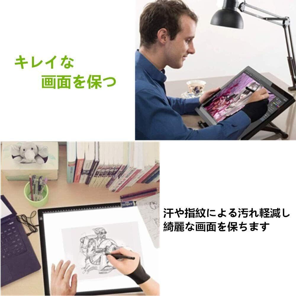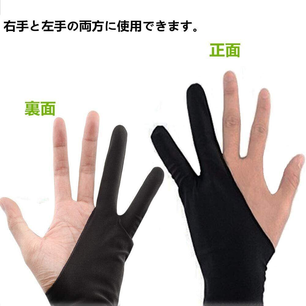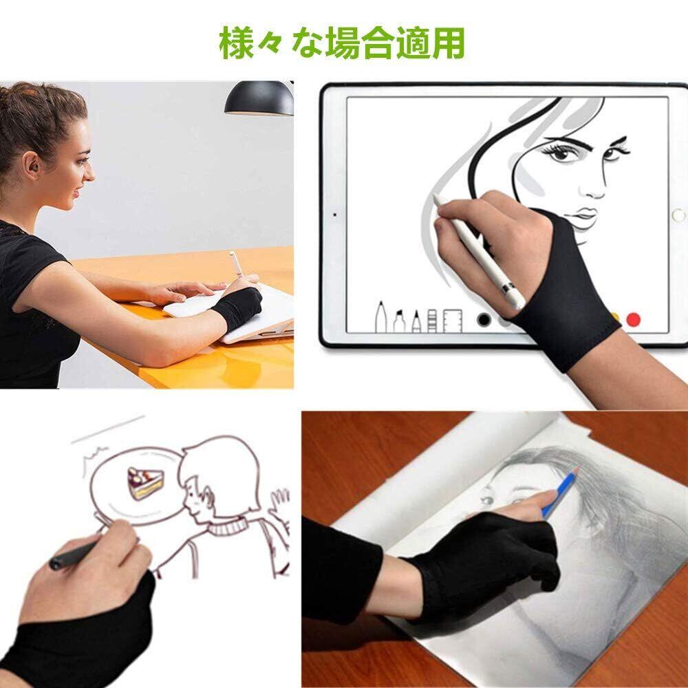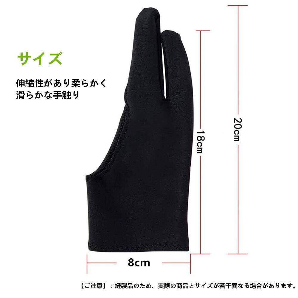 二本指 グローブ 2枚入り 防汚 通気性 超軽量 快適 ライクラ繊維 グローブ タブレット お絵描き手袋 液晶ペン タブレット用 対応 左利き 右利き 便利 通用 フリーサイズ 男女兼用 ブラック