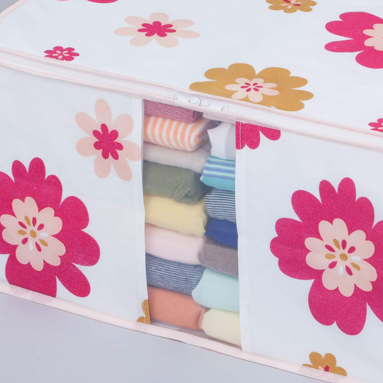 アストロ 収納ボックス 【 抗菌 防臭 衣類収納ケース 】 通気性の良い不織布がホコリなどの汚れをガード 中身の見える透明窓付 抗菌剤練り込み生地 持ち手付き 衣装ケース 奥行35cm 洋服 衣類 保管 クローゼット 押入れ 洋服収納ボックス ほこり ニオイ 対策 花柄 618-40