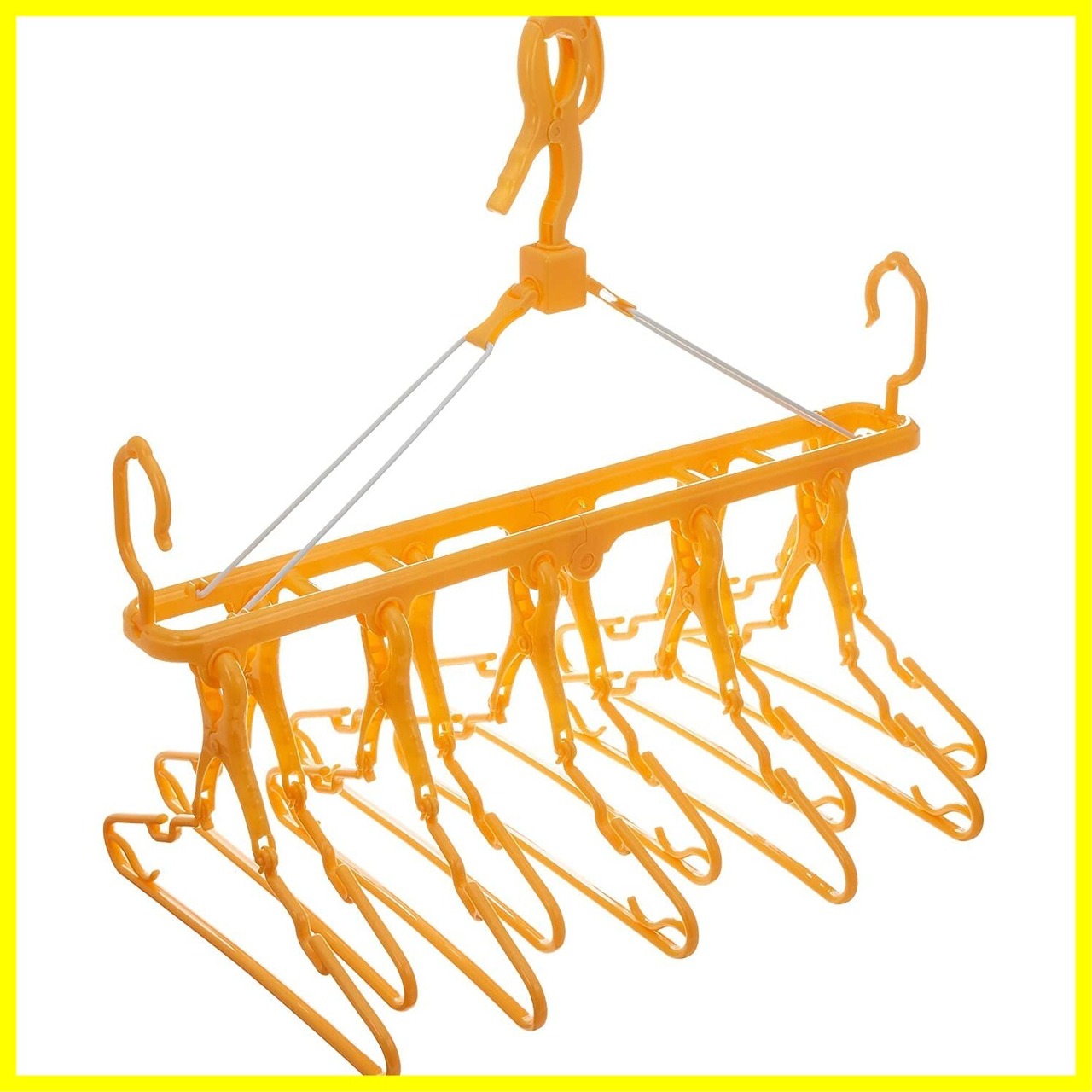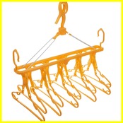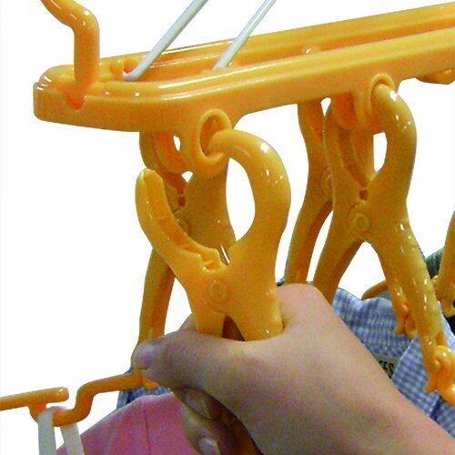 干しやすい!乾きやすい!取り込みやすい!取り外し10連ハンガー。室内干しに便利なフック付き。低い位置でもサイドフックで対応。掛けたまま折りたためて、たがい違いに干せます。(使用方法)1、ホールバーを広げる。2、吊り下げフックを引き上げる。3、吊り下げフックのグリップを握り、バーから外す。4、吊り下げフックを上部に出す。5、吊り下げフックのグリップを握り、洗濯用ポールに掛ける。6、ホール部に洗濯物を掛けたハンガーをバランス良く干してください。