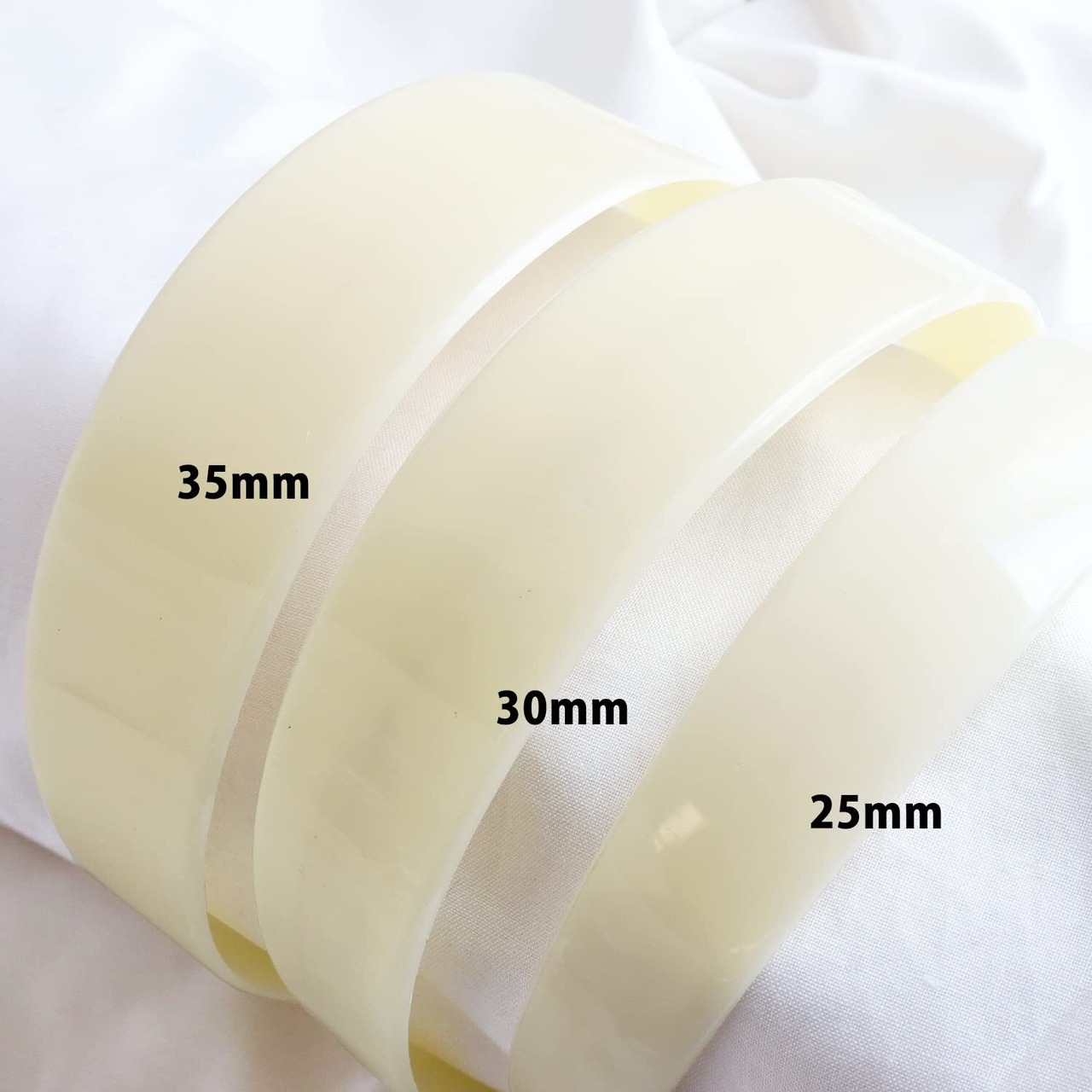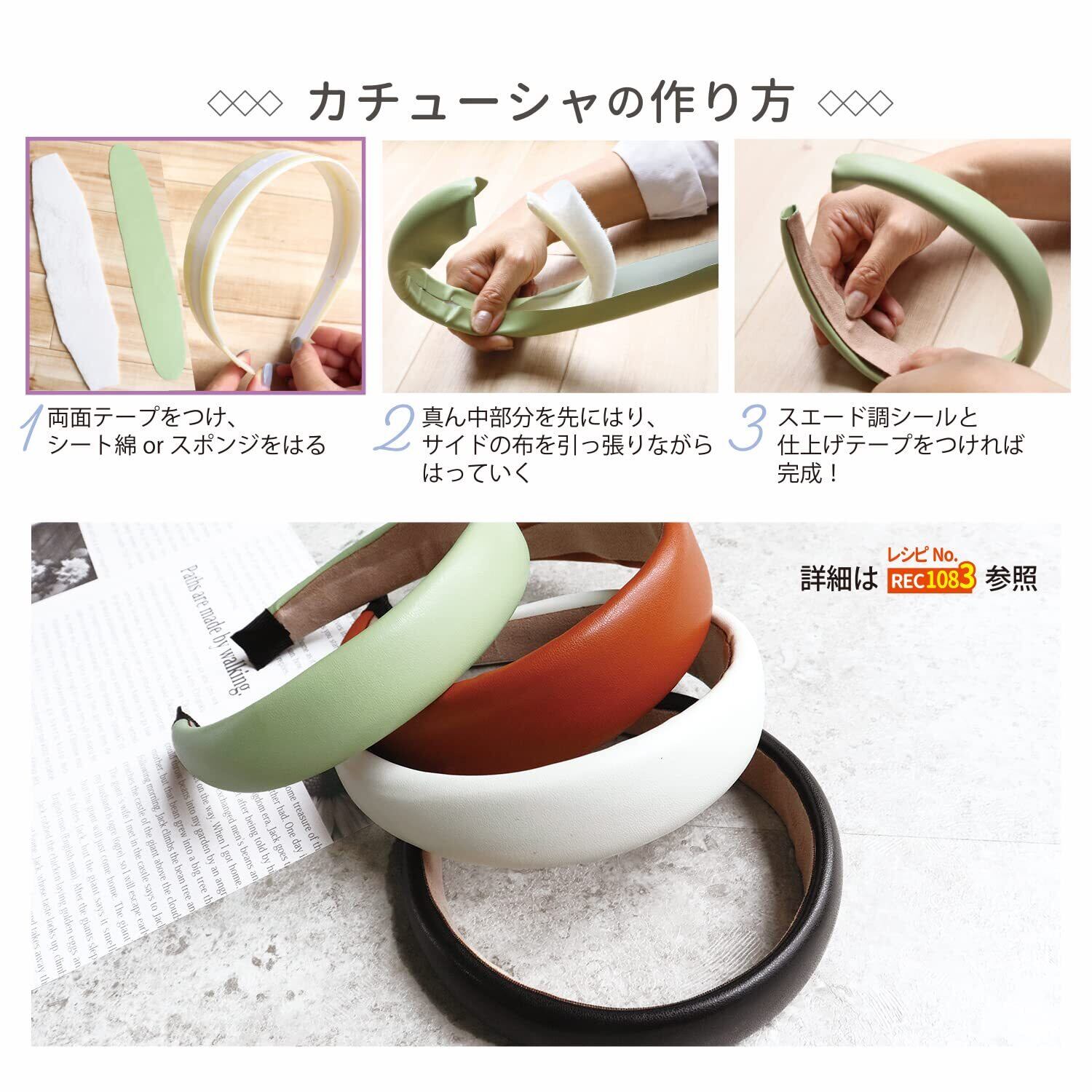 先に向かって細くなります。カチューシャにボンドや両面テープでリボンや生地を貼り付け、お好みをパーツを付ければオリジナルカチューシャが簡単に出来上がります。 太幅なのでぷっくりしたかわいいパフカチューシャに仕上がります。