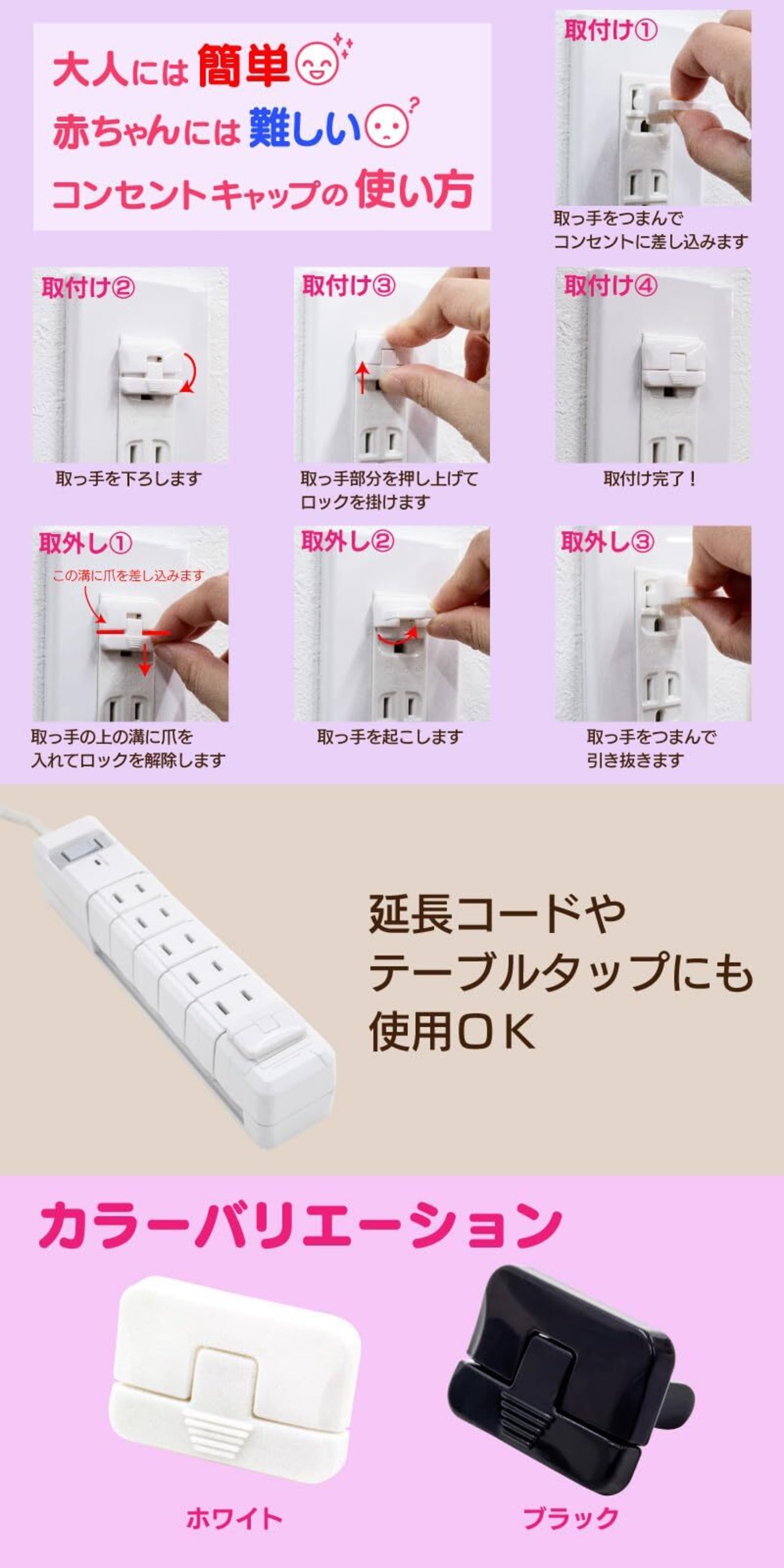 シンプルな形とコンセントと同じ白色なので赤ちゃんが気にしません