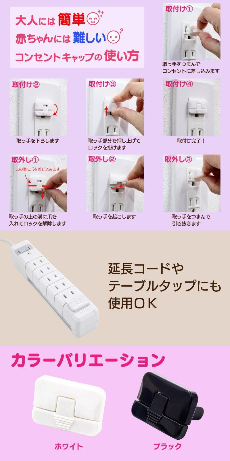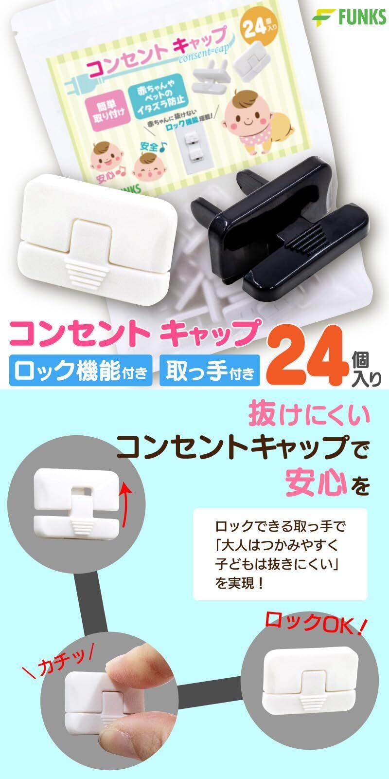 FUNKS 抜けにくい コンセントキャップ ロック付き 24個セット コンセントカバー 赤ちゃん 取っ手 ロック付き コンセントガード (ホワイト)