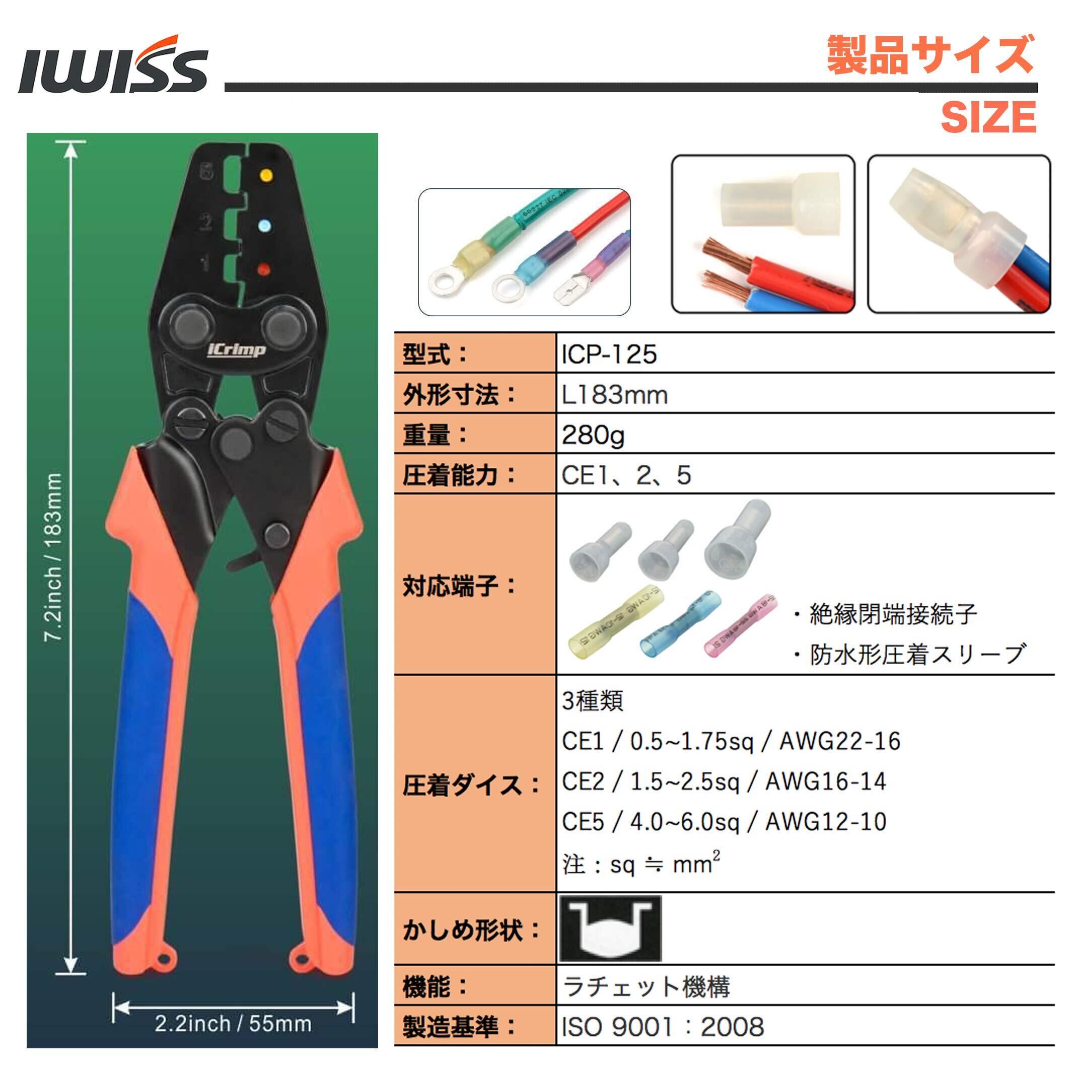 アイウィス(IWISS) 絶縁被覆付閉端接続子 圧着工具 ラチェット式 JIS準拠 CE-1 / CE-2 / CE-5用 IWS-125
