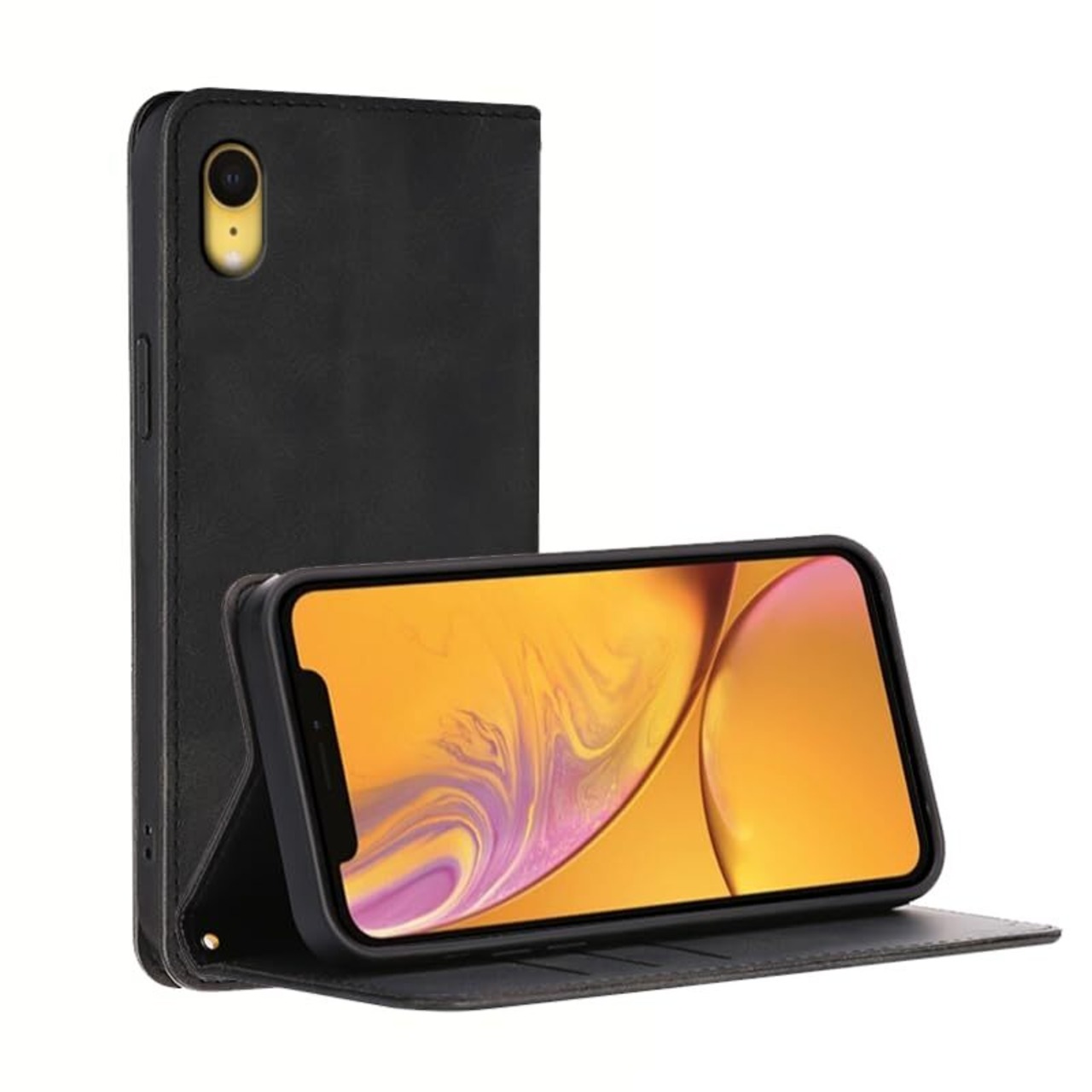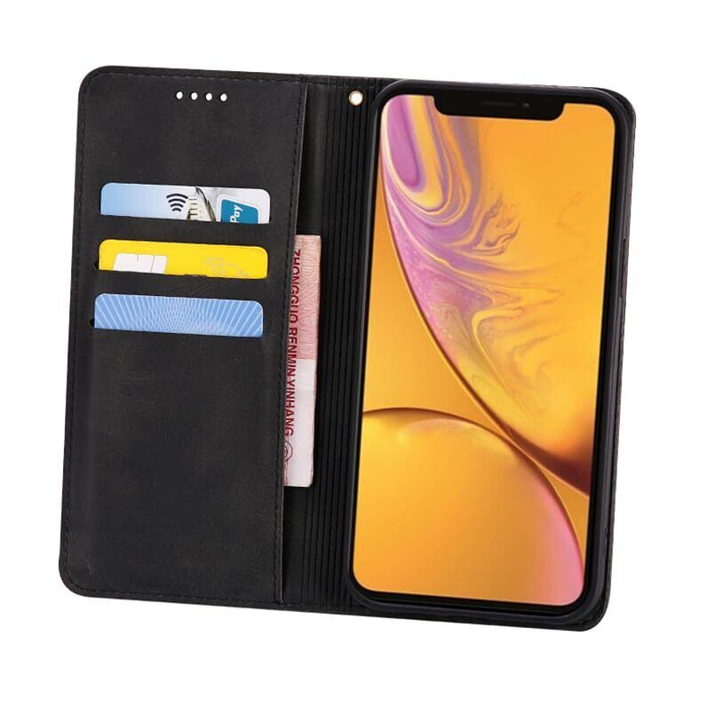 適用 iPhone XR ケース 手帳型 iPhone xr 用 手帳型ケース iPhone xr 用 カバー 手帳型 PUレザー カード収納 財布型 耐衝撃 ケース マグネット スタンド機能付き 5色(iPhoneXR 用 ケース 手帳型) (ブラック)